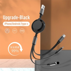Cable Usb Retractil 3 En 1 Cable De Datos De Carga Rapida 1m