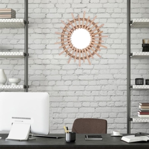 Espejo Colgante Pared Ratán Sol Redondo Decoración 28 Cm