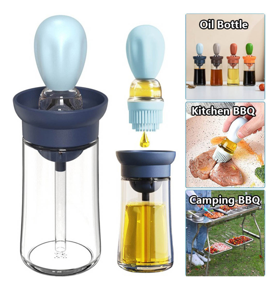 Práctica aceitera con pincel medidor, ideal para cocinar. Puedes utilizarla para aceite, salsa de soja, aderezos caseros, etc.