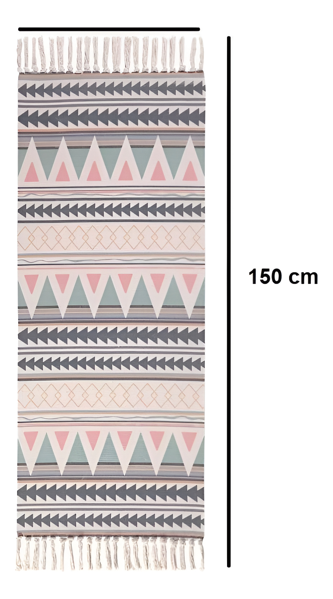 – Diseño: nórdico con detalles vintage y flecos en los extremos.