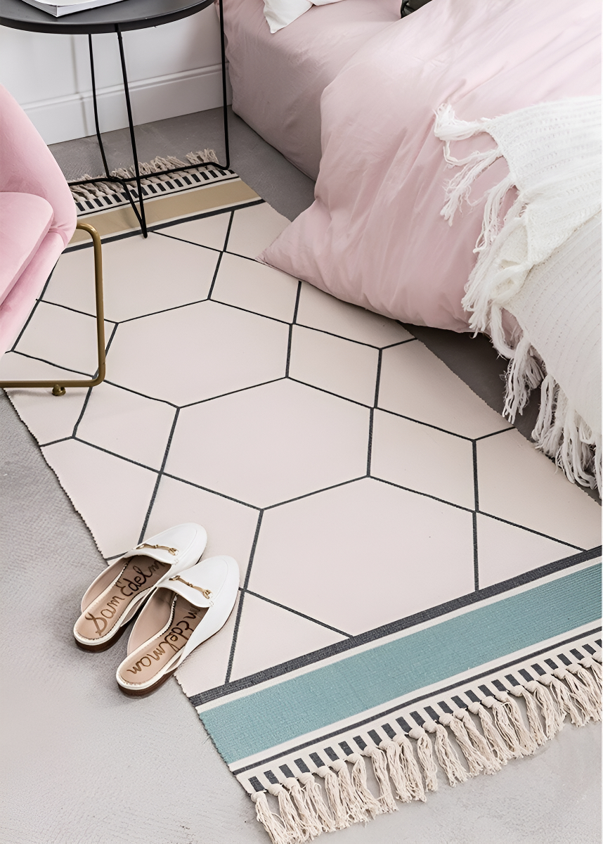 Dale estilo y calidez a tu hogar con esta alfombra nórdica de diseño geométrico. Ideal para crear ambientes modernos y acogedores en cualquier espacio de la casa.