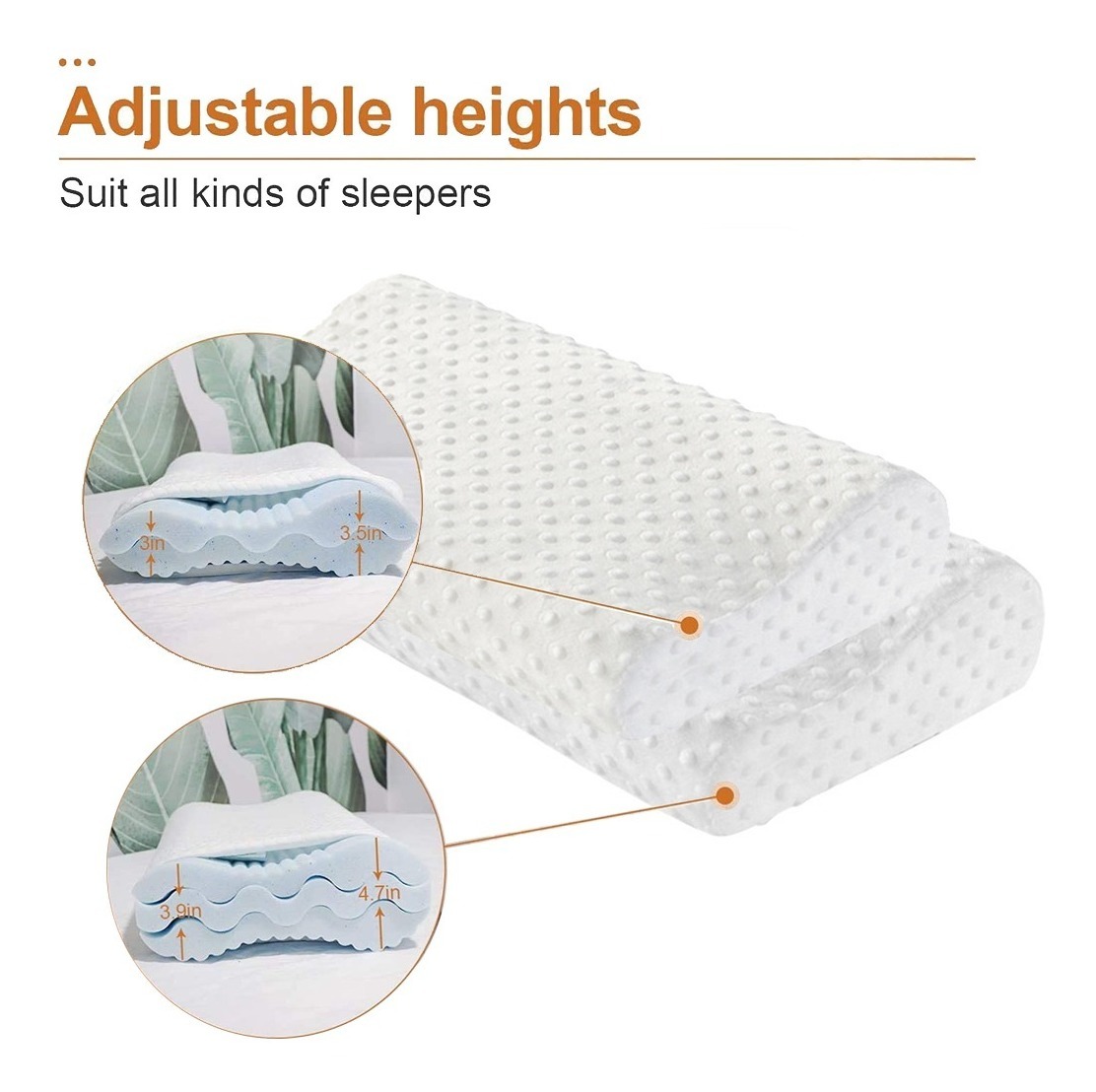 Almohada viscoelástica ortopédica con memoria, diseñada para aliviar el dolor de cuello y cervicales. Su material viscoelástico se adapta a la forma de la cabeza y cuello, ofreciendo un soporte adecuado y promoviendo una postura correcta durante el sueño. Ideal para quienes sufren de molestias cervicales o buscan un descanso más cómodo y reparador.