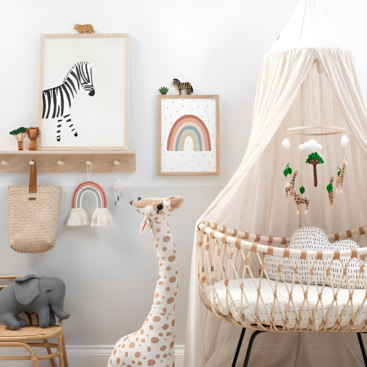 Sumá ternura y estilo al cuarto infantil con esta jirafa de peluche de 100 cm. Su textura súper suave y el diseño realista invitan a abrazarla, jugar y usarla como pieza decorativa protagonista.