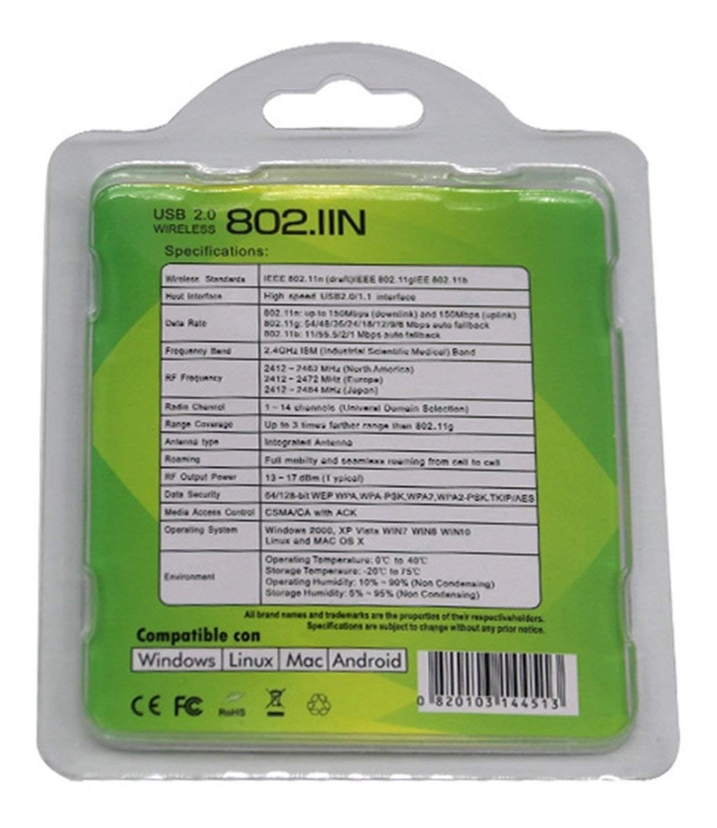 Adaptador USB de norma 802.11n con velocidad de hasta 3000Mbps.