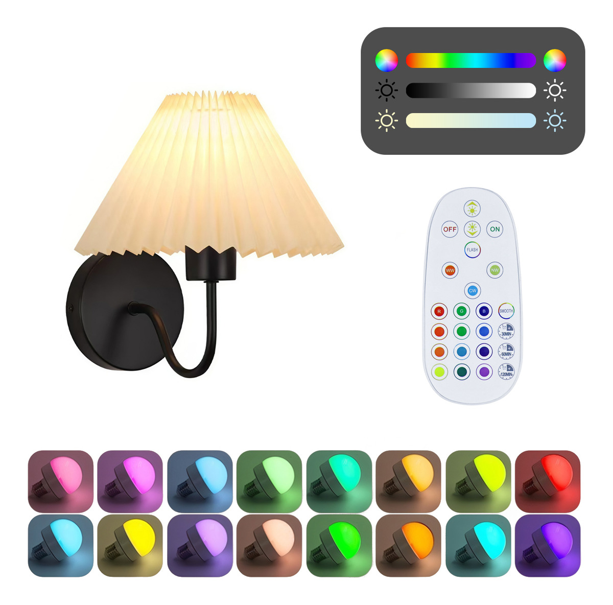 Lámpara Aplique De Pared Pantalla Plástica Plisada Led Rgb