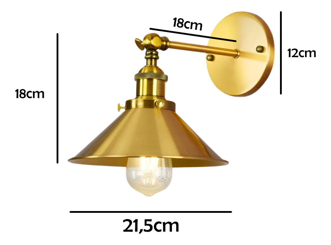 Iluminá y decorá tus ambientes con este aplique de pared estilo vintage en metal con terminación dorada. Aporta una luz cálida y un toque sofisticado que realza pasillos, livings y dormitorios con un look atemporal.