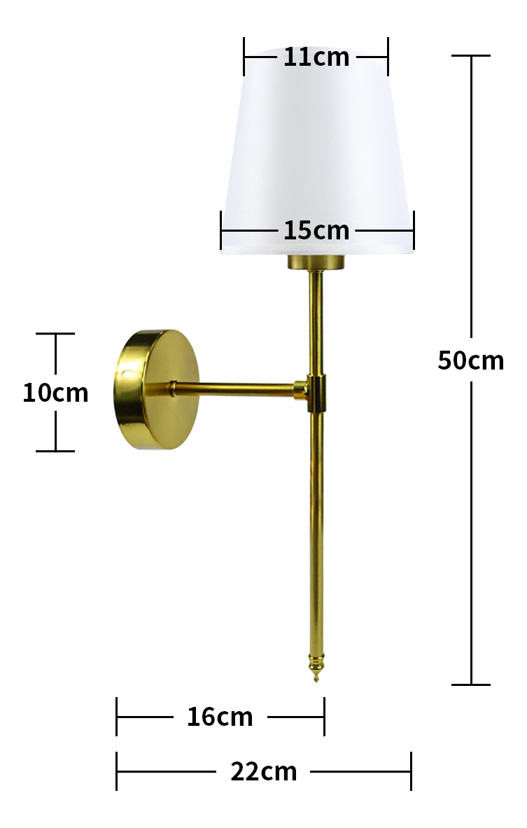 – Salida de pared: 22 cm aprox. (brazo 16 cm).