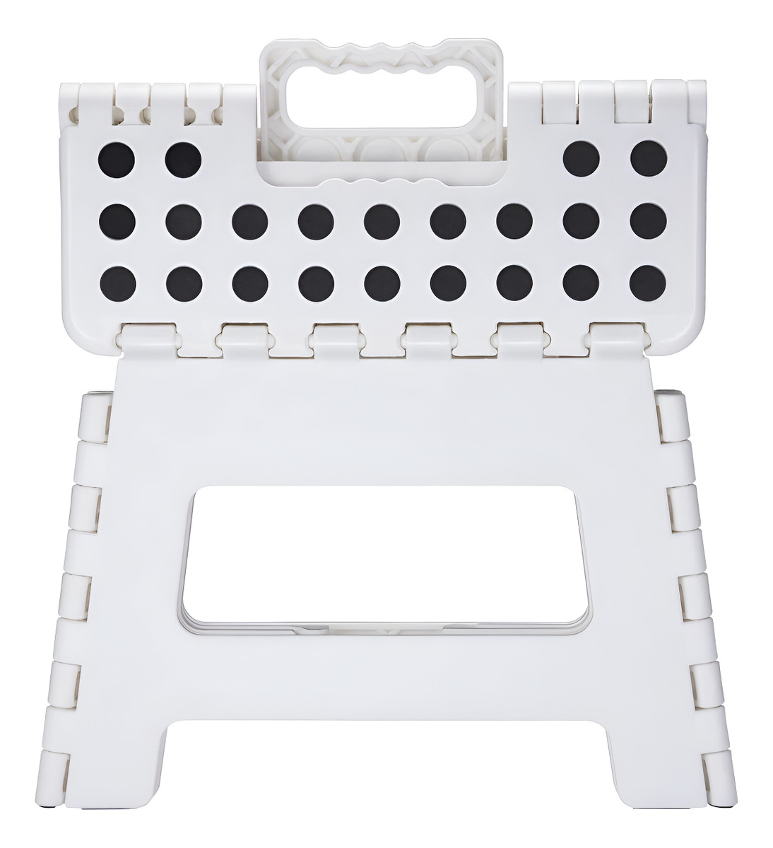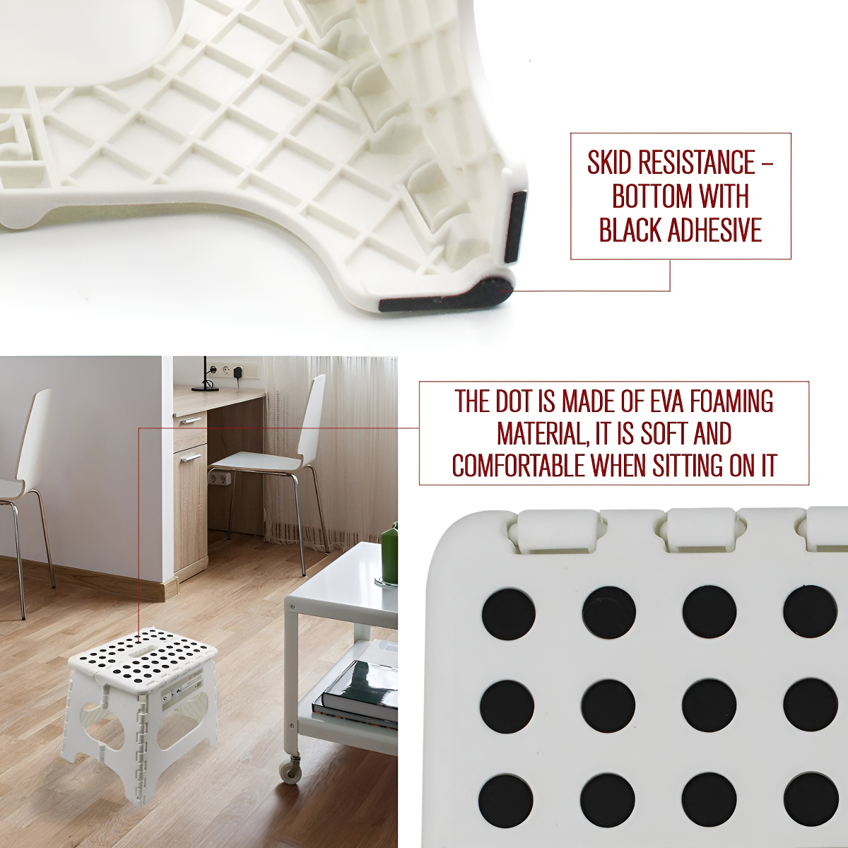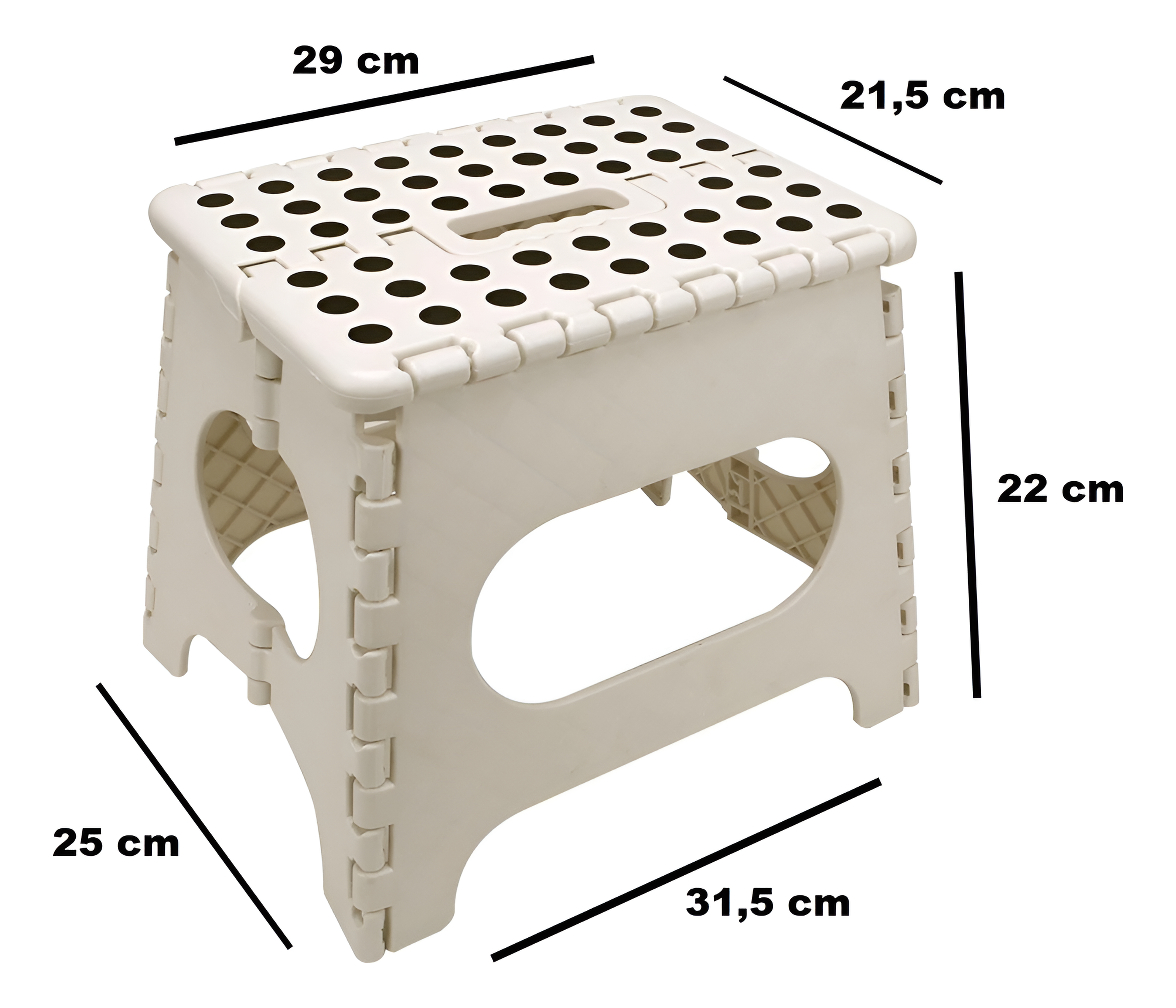 Su diseño compacto y plegable permite guardarlo fácilmente sin ocupar espacio, mientras que su superficie antideslizante y patas estables brindan seguridad en cada uso.