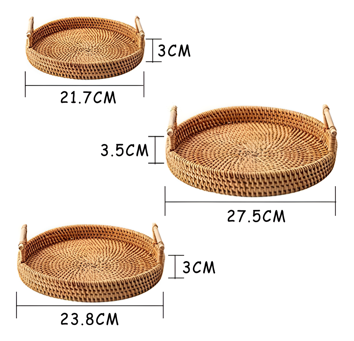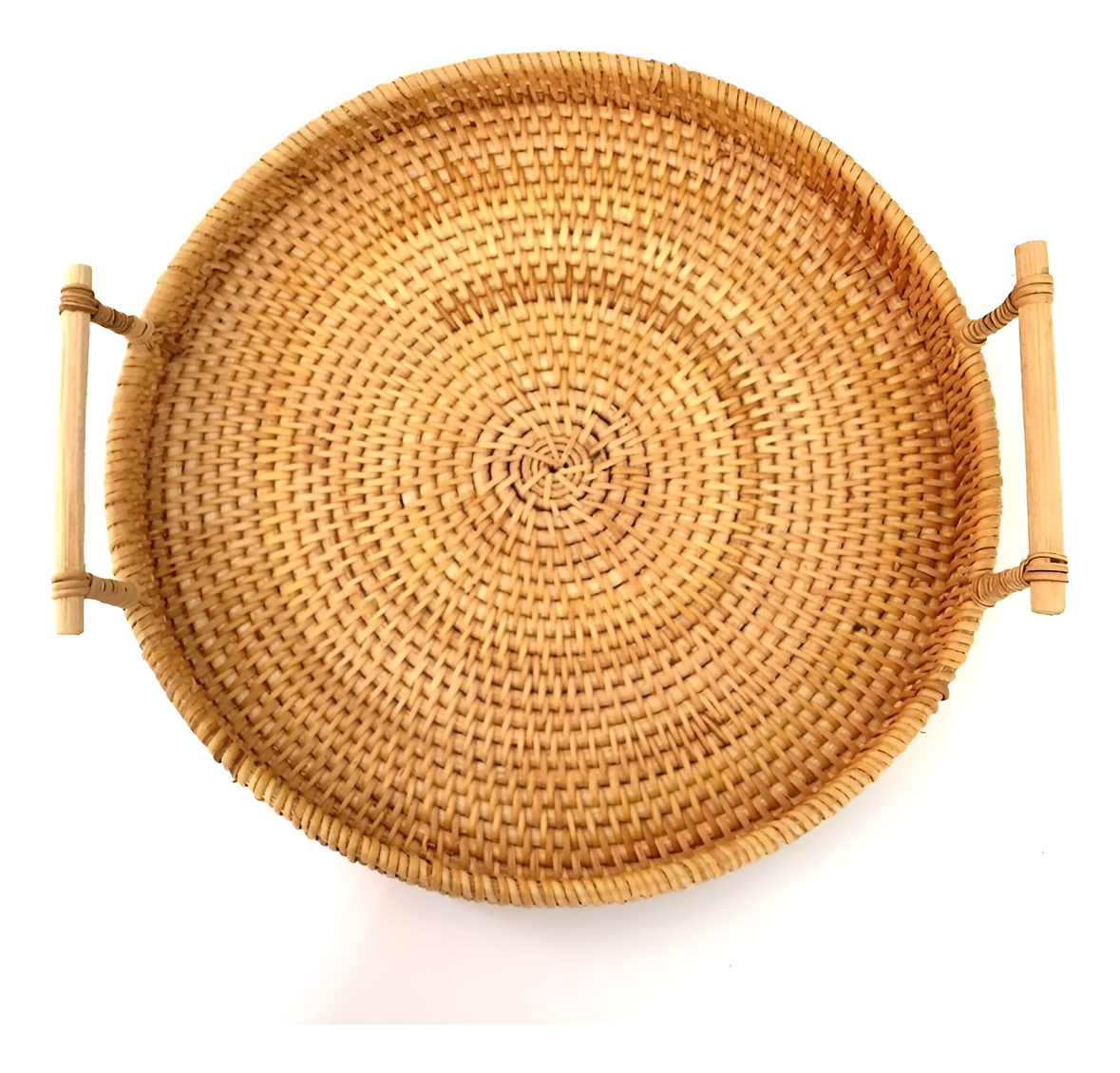 Bandeja Rattan Con Asas Circular Rustica Decorativa 22cm