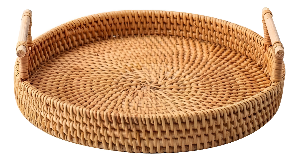 Bandeja Rattan Con Asas Circular Rustica Decorativa 28cm