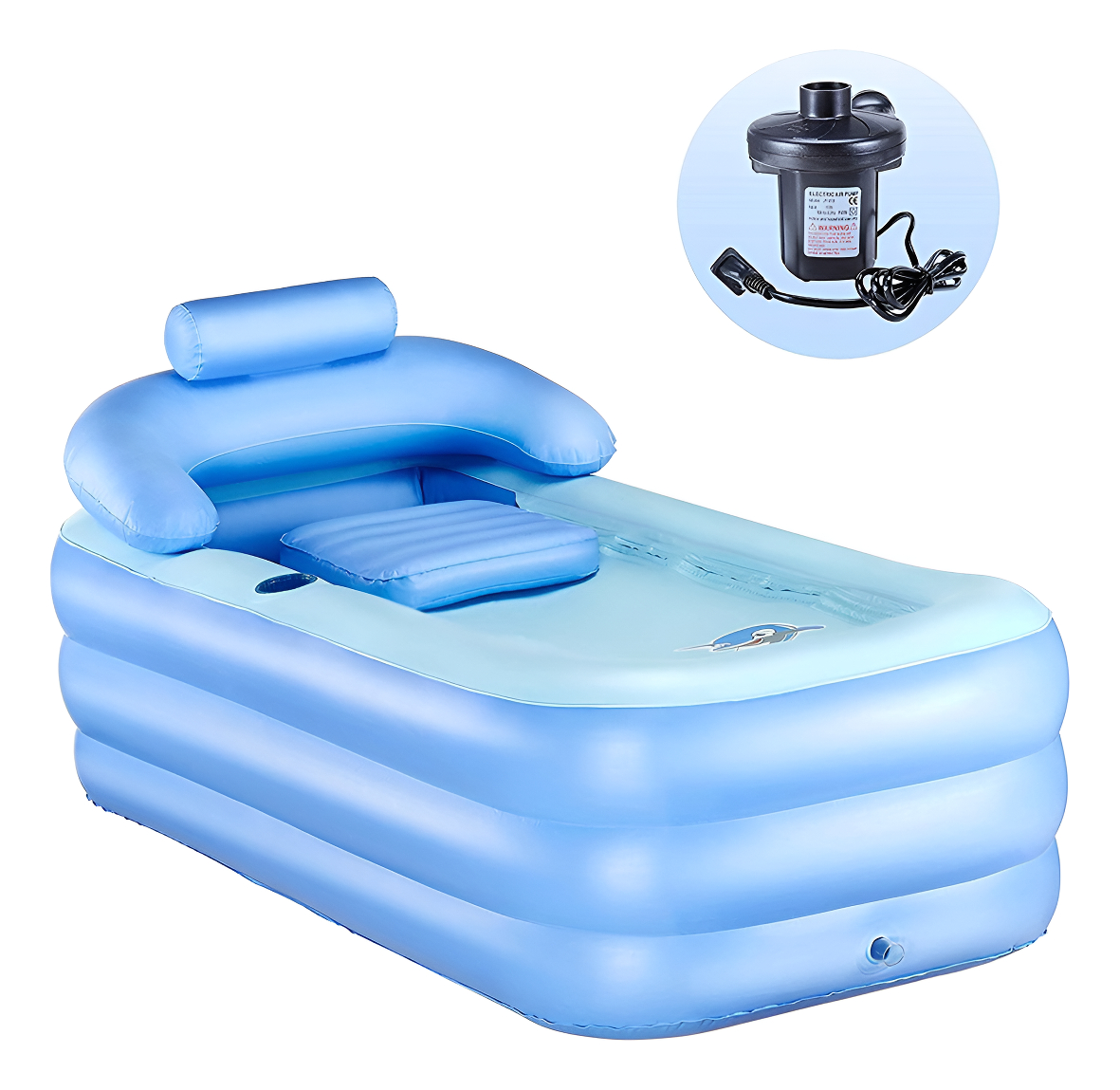 Ideal para disfrutar de un baño caliente donde quieras, esta tina inflable de PVC es cómoda, resistente y fácil de armar. Su diseño ergonómico incluye respaldo, cojín inflable y soporte para bebidas. Se pliega fácilmente para guardarla o transportarla, y viene con inflador incluido para que puedas usarla de inmediato.