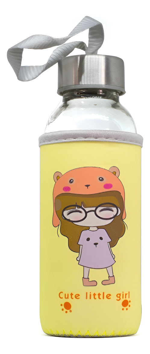 Hidratate con estilo y practicidad con esta botella de vidrio con funda de neopreno. Su diseño divertido la convierte en la compañera ideal para la escuela, el parque o cualquier salida, mientras que su tamaño compacto es perfecto para los más chicos.