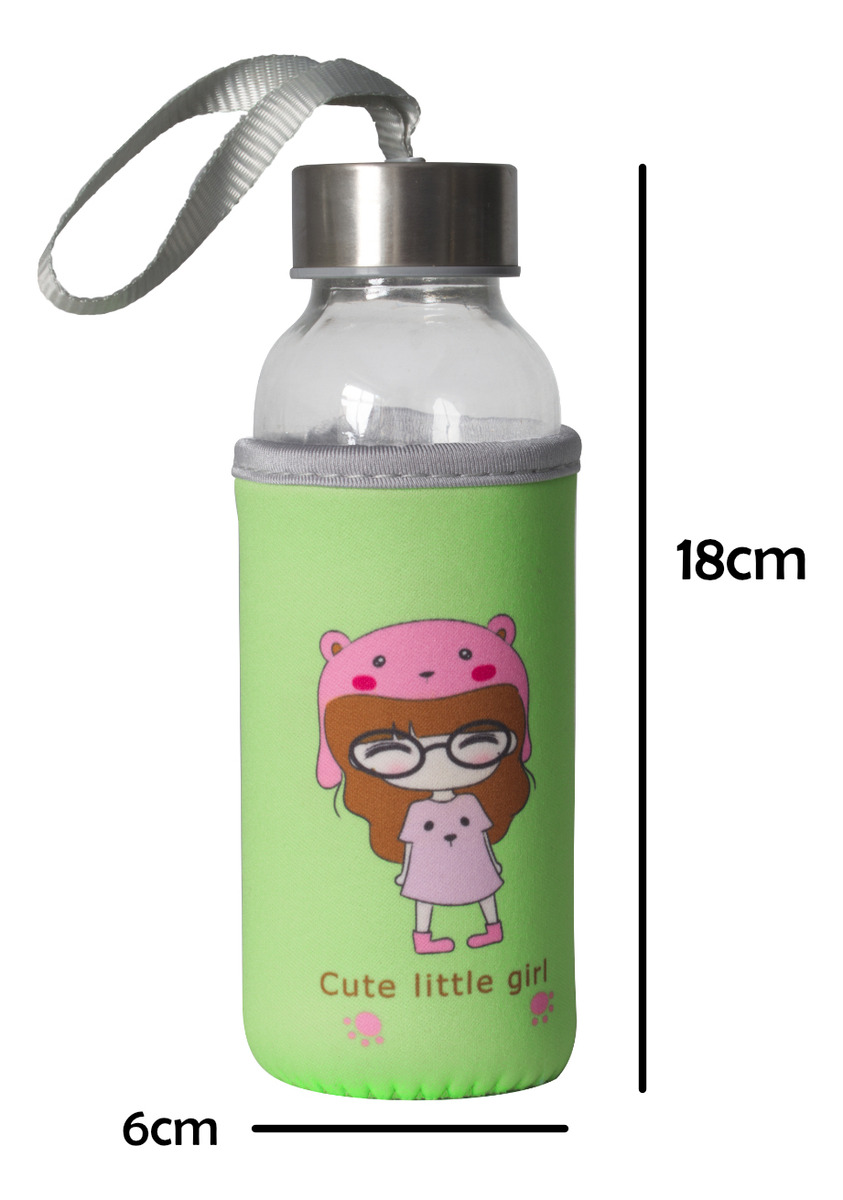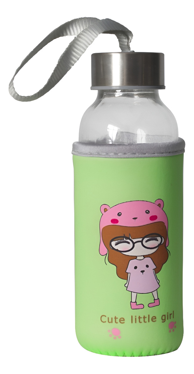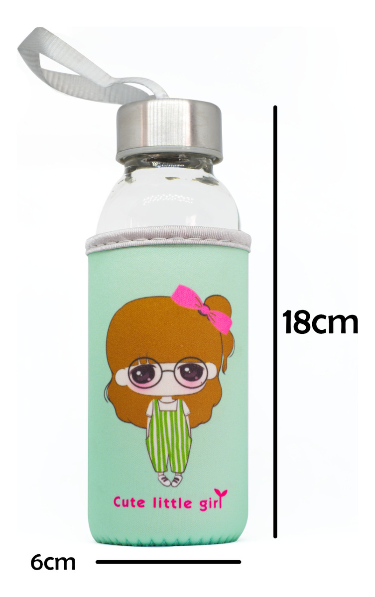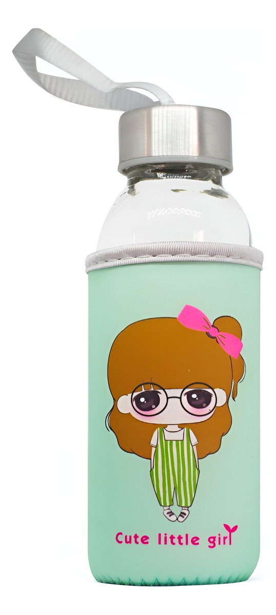 Hidratate con estilo y practicidad con esta botella de vidrio con funda de neopreno. Su diseño divertido la convierte en la compañera ideal para la escuela, el parque o cualquier salida, mientras que su tamaño compacto es perfecto para los más chicos.