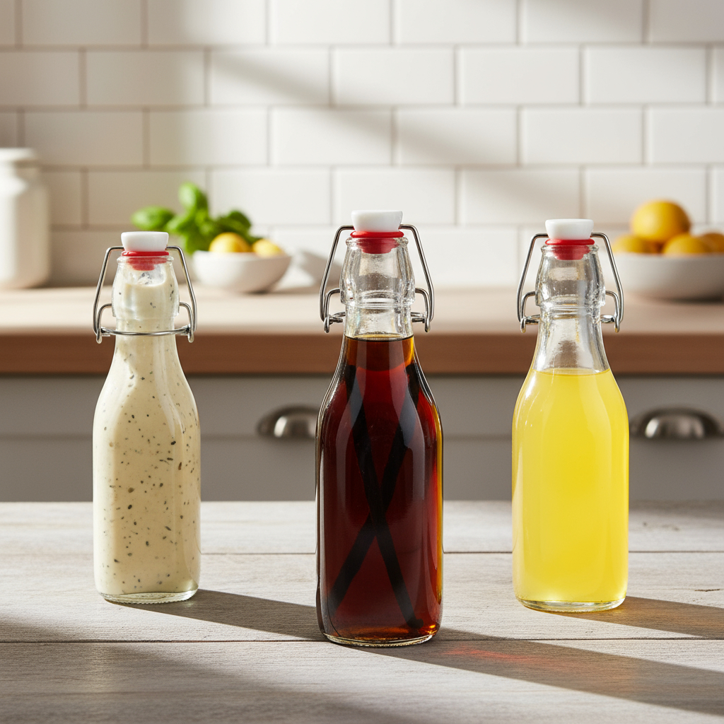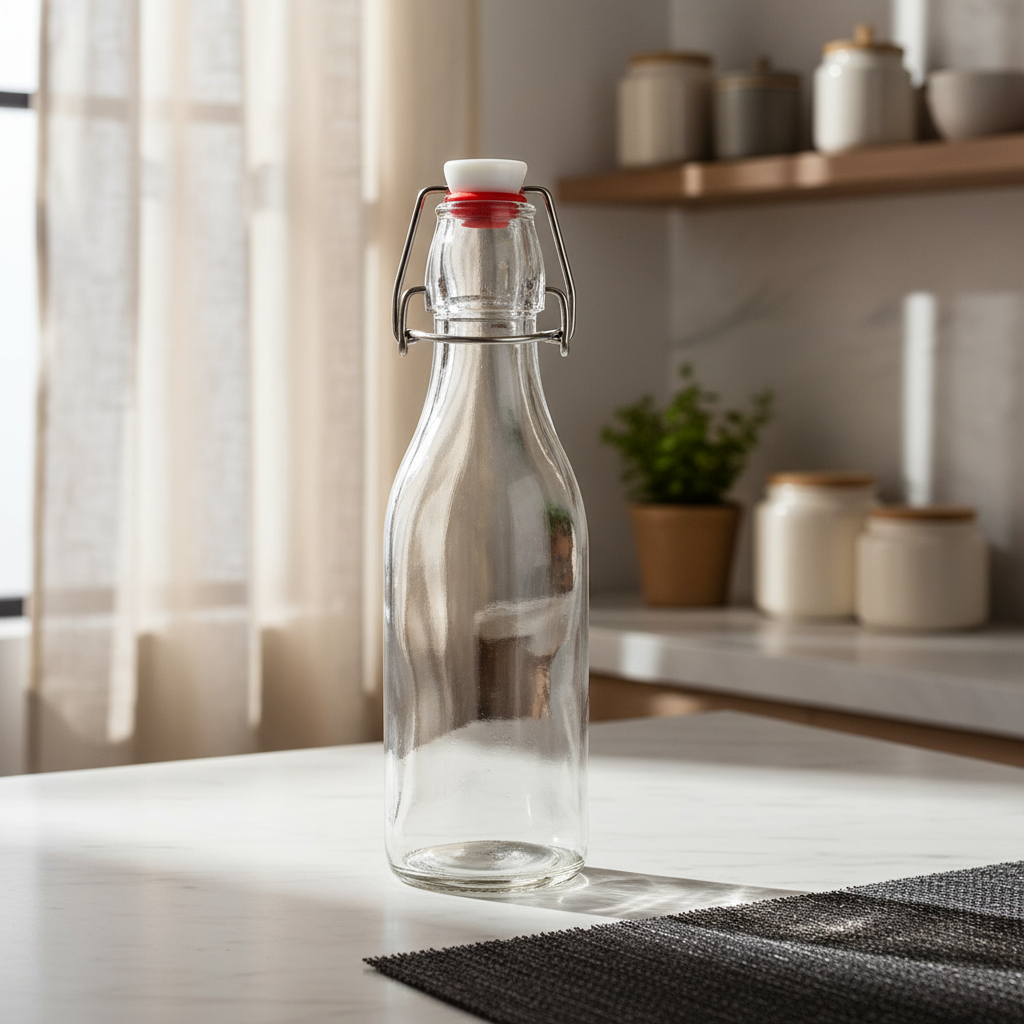 Sumá practicidad y estilo a tu cocina con esta botella de vidrio de 1.000 ml con tapa hermética abatible. Es ideal para fermentaciones caseras (kombucha, kéfir de agua, ginger beer) y también para agua, jugos, salsas, aceites o vinagres, manteniendo el contenido fresco y protegido.