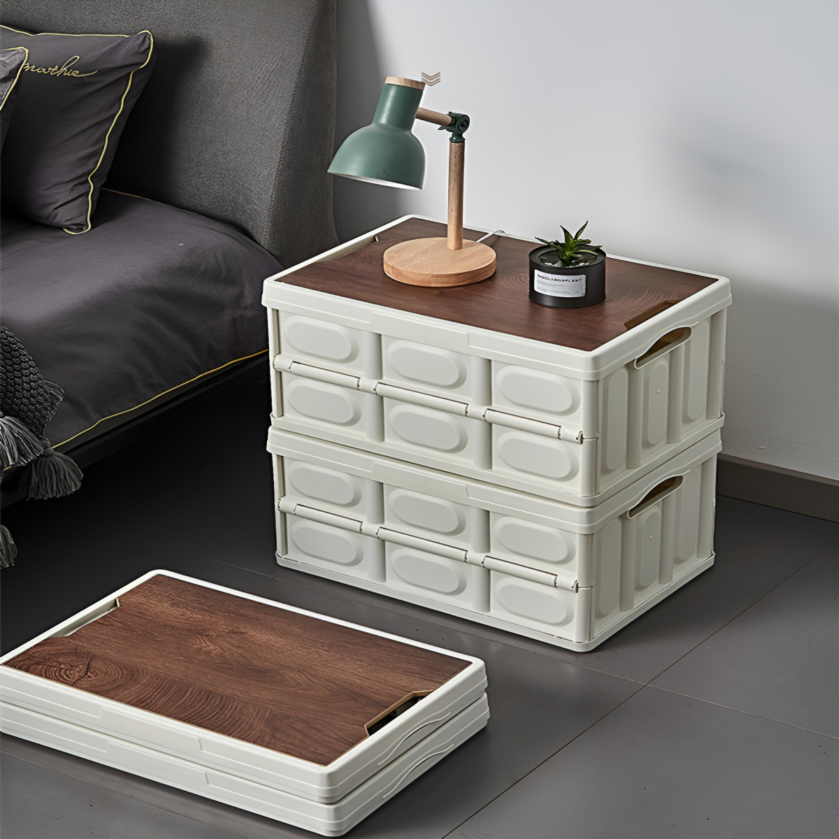 Organizá tus espacios con esta práctica caja de almacenamiento plegable con tapa de madera. Su diseño robusto y versátil la hace ideal para guardar ropa, juguetes, herramientas, productos de limpieza o cualquier artículo que necesites mantener ordenado, ya sea en interiores, exteriores o incluso en el coche.