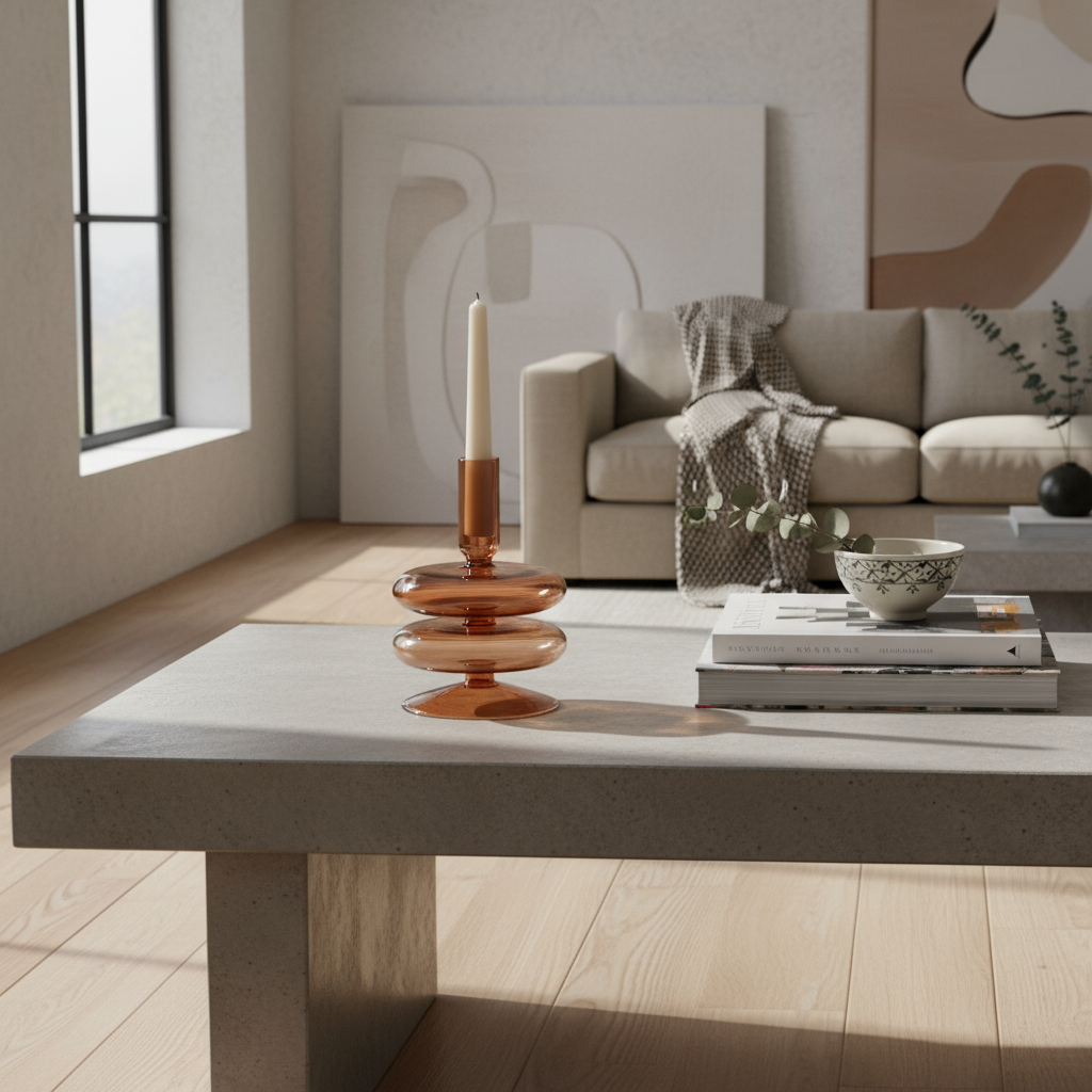 Elegí darle un aire elegante y moderno a tus espacios con este portavela de cristal ancho. Su diseño único no solo ilumina con calidez, sino que también funciona como un objeto decorativo que realza mesas, estantes o cualquier rincón especial.