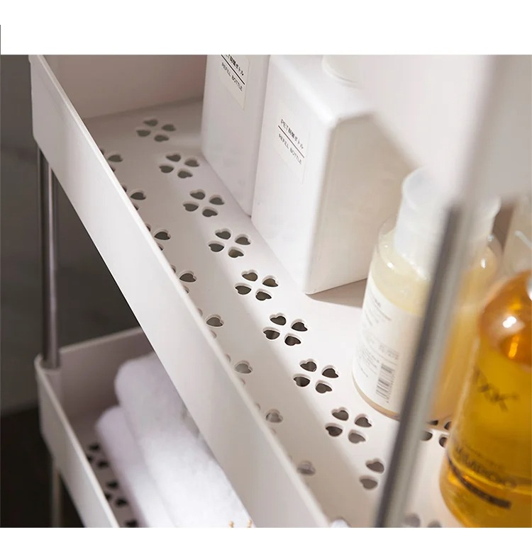 Carrito con 4 niveles ideal para el baño cocina o comedor, cuenta con agujeros en forma de flores.