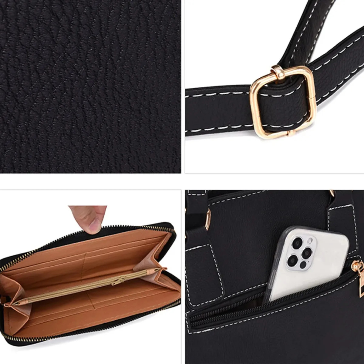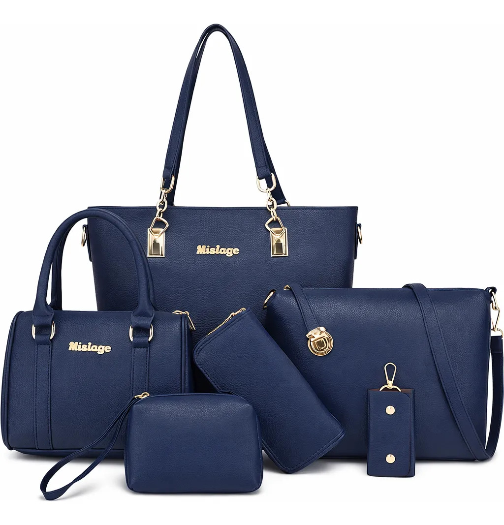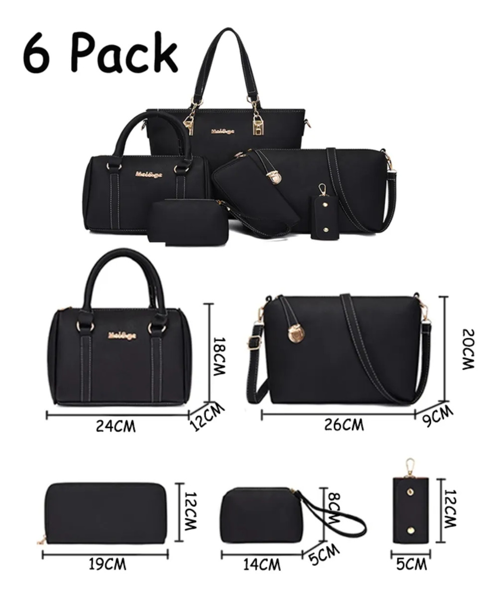 Cartera Bolso Set X 6 Piezas Premium Importado Moda Liso