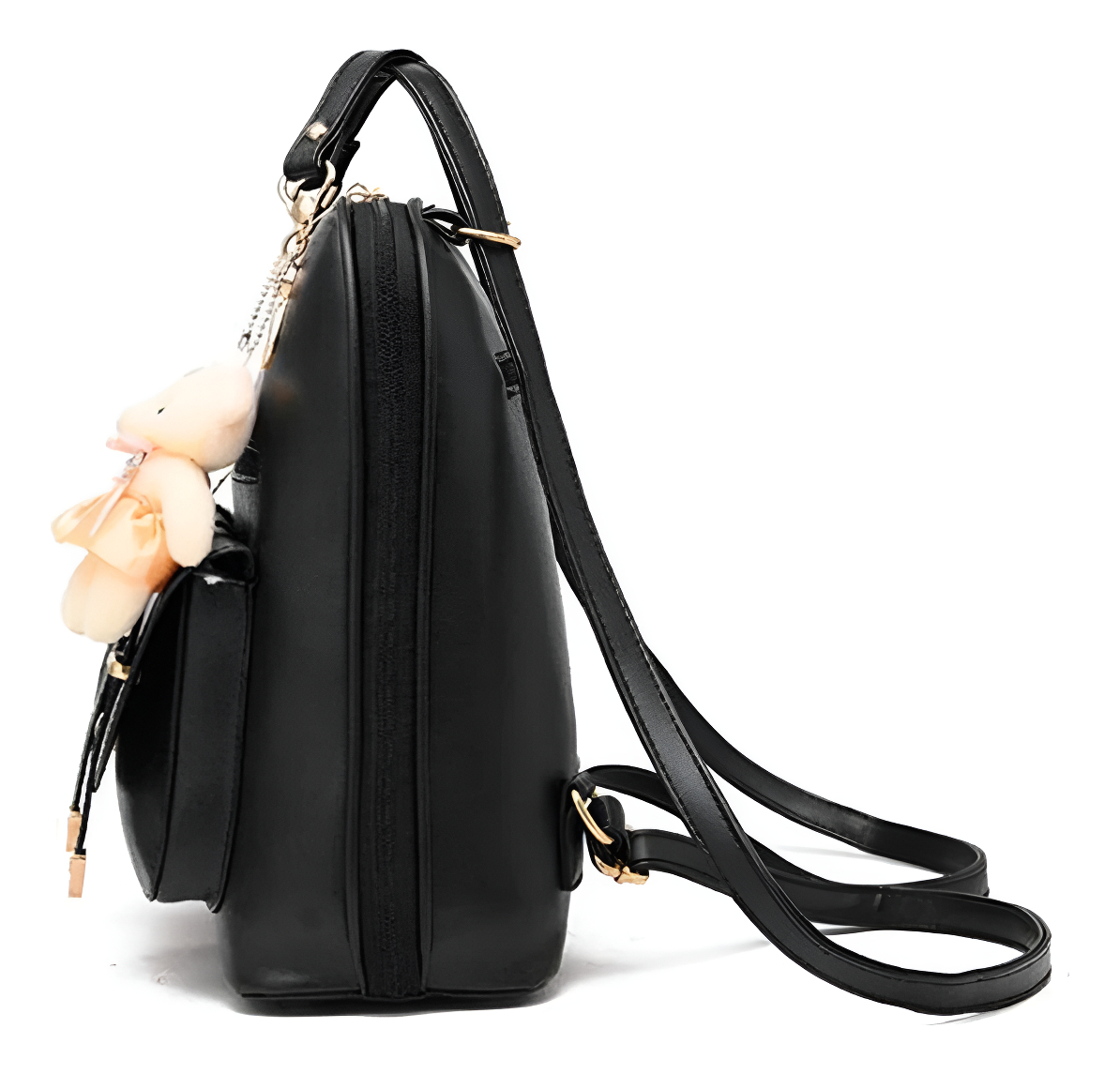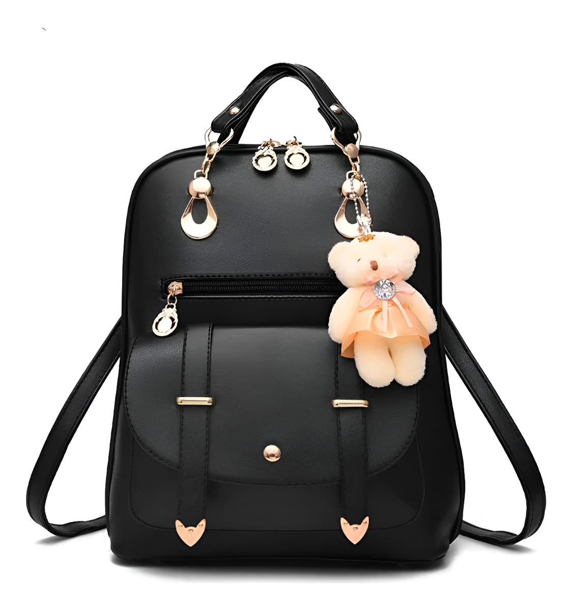 Elevá tu look diario con esta cartera mochila urbana de cuerina. Su formato práctico y moderno te permite llevar todo con orden y manos libres, incorporando un colgante de peluche que aporta un toque de personalidad sin perder funcionalidad.