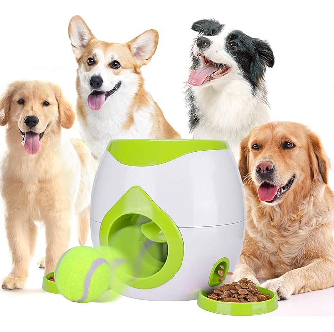 Convertí el entrenamiento en juego con este lanzador interactivo para perros. Cada vez que tu mascota deja la pelota por la parte superior, el juguete libera snacks por los laterales como recompensa y la pelota sale por el frente para repetir la acción. Ideal para estimular mente y cuerpo dentro de casa.
