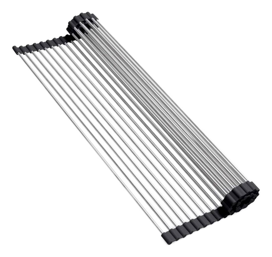 Rejilla plegable (enrollable) para escurrir platos, vasos, cubiertos y mucho más. Su diseño permite colocarse en la pileta por lo que no ocupa prácticamente lugar, luego de utilizado, puede enrollarse y guardarse hasta su próximo uso.