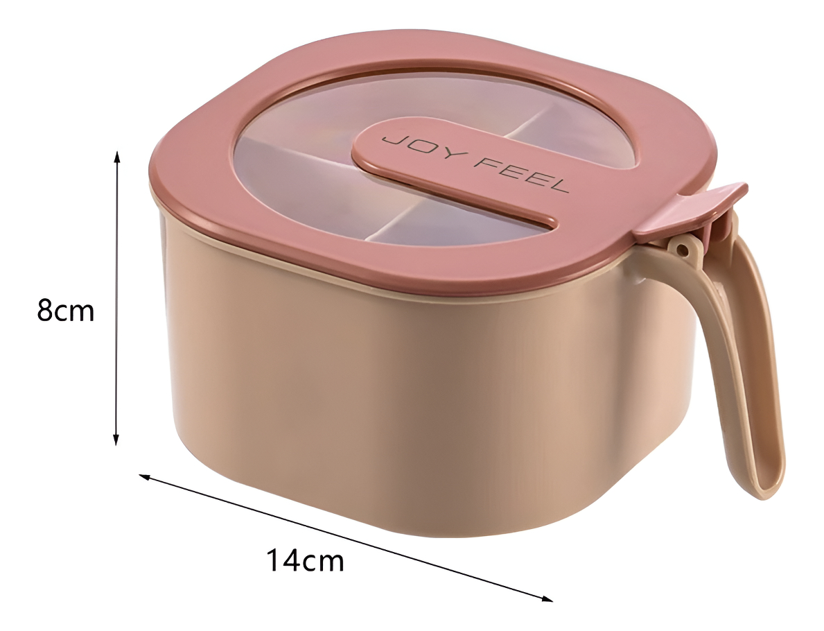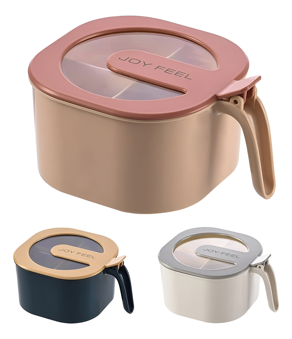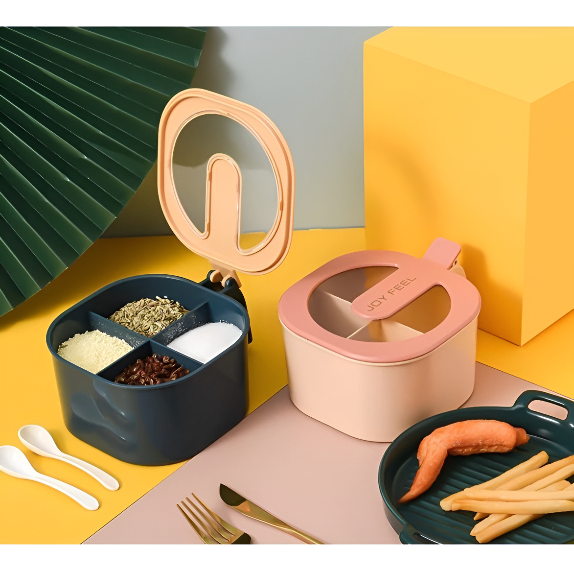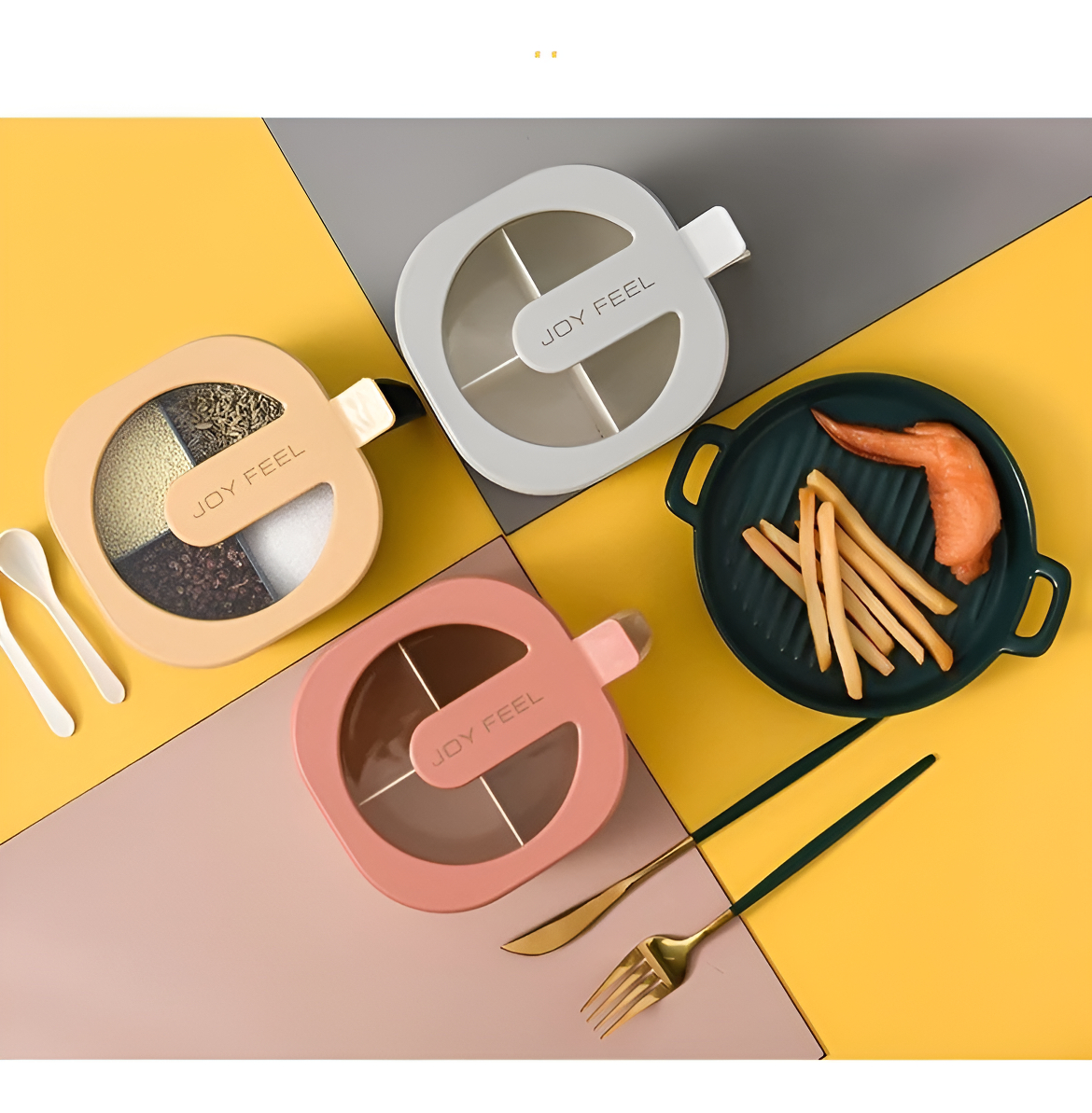 Mantené tus especias siempre frescas y al alcance con este práctico especiero Joy Feel. Su diseño moderno con tapa protectora y divisiones internas te permite organizar diferentes condimentos en un solo recipiente, ocupando menos espacio en tu cocina.