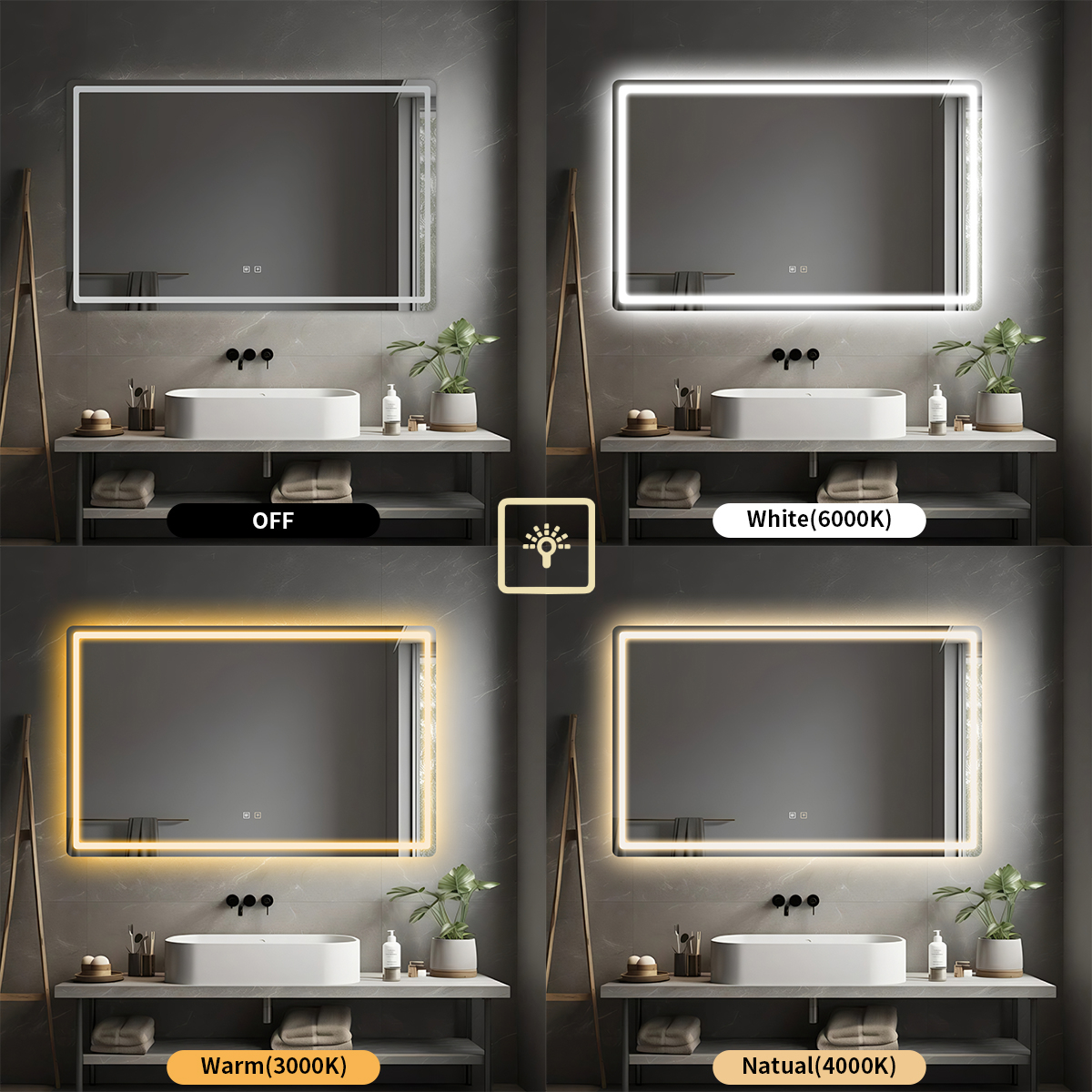 Su iluminación LED perimetral doble ofrece una luz uniforme y sin sombras, ideal para maquillarte, afeitarte o realizar tu rutina diaria con máxima precisión. Además, permite elegir entre tres temperaturas de color según el momento: luz cálida, natural o blanca.