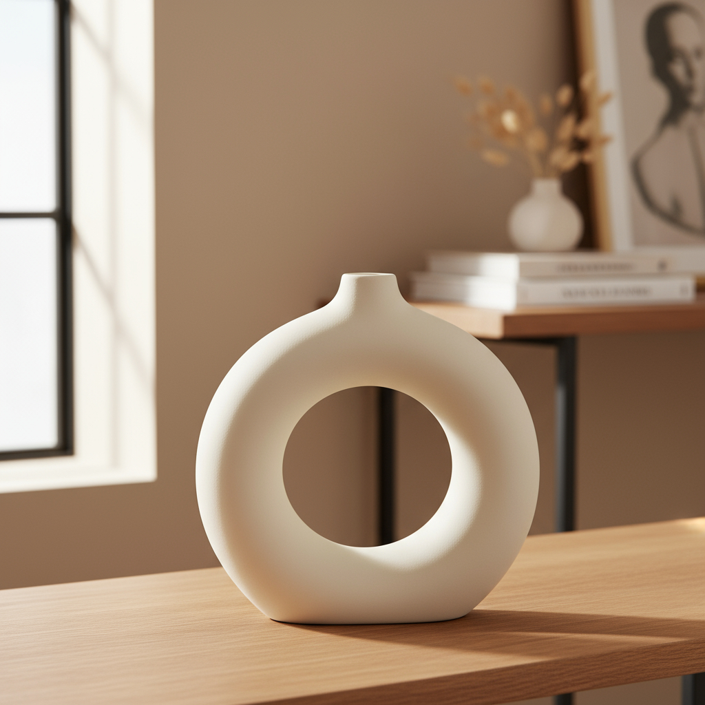 Transformá tu hogar con este florero circular de cerámica y sumá un detalle moderno que nunca pasa desapercibido.