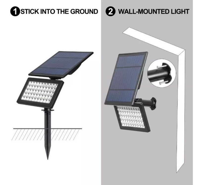 Foco Solar 50 Led Exterior Jardín Ajustable Automático