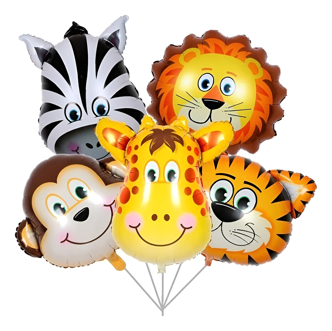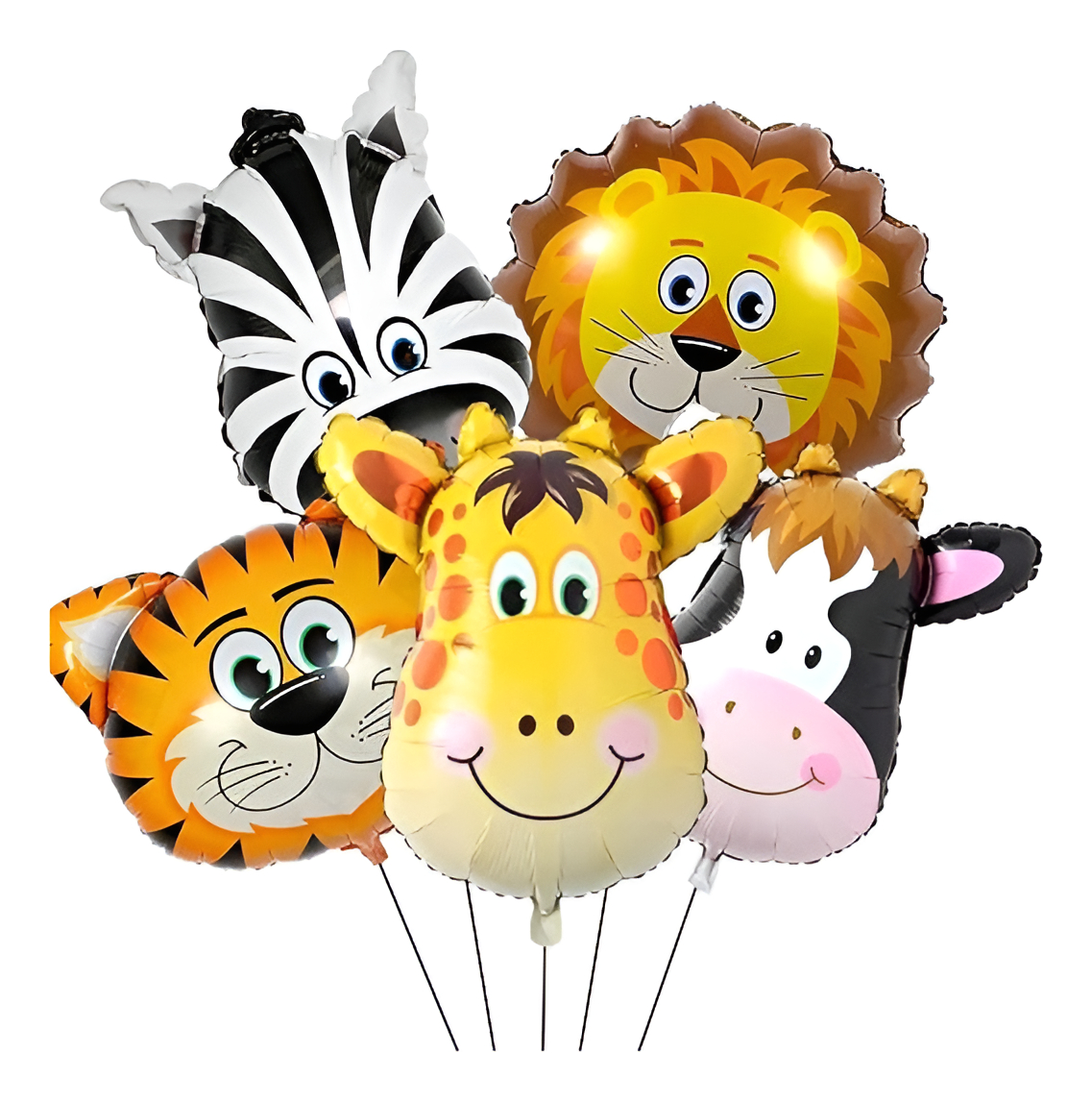 Dale vida a tu fiesta con estos simpáticos globos metálicos con forma de animales de la selva. Son ideales para decorar cumpleaños, baby showers, eventos escolares o cualquier celebración donde quieras agregar un toque alegre y original.