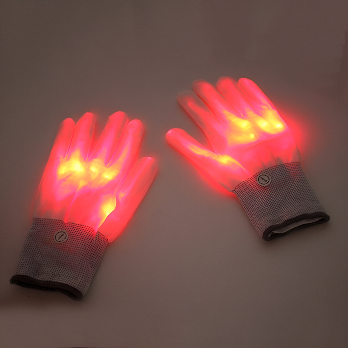 Hacé que tu look destaque con estos guantes LED neón que se iluminan al encenderse, creando un efecto visual único para cualquier evento nocturno. Apagados tienen un diseño elegante en blanco y gris claro, pero al activarlos, se encienden en el color correspondiente, robándose todas las miradas.