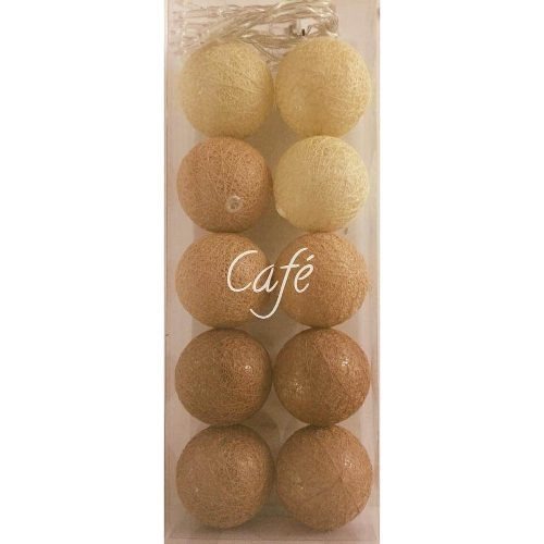 La guía es de 10 esferas plástica de hilo, mide 1,75 aprox. y su funcionamiento es a pila (no incluidas), luz cálida.