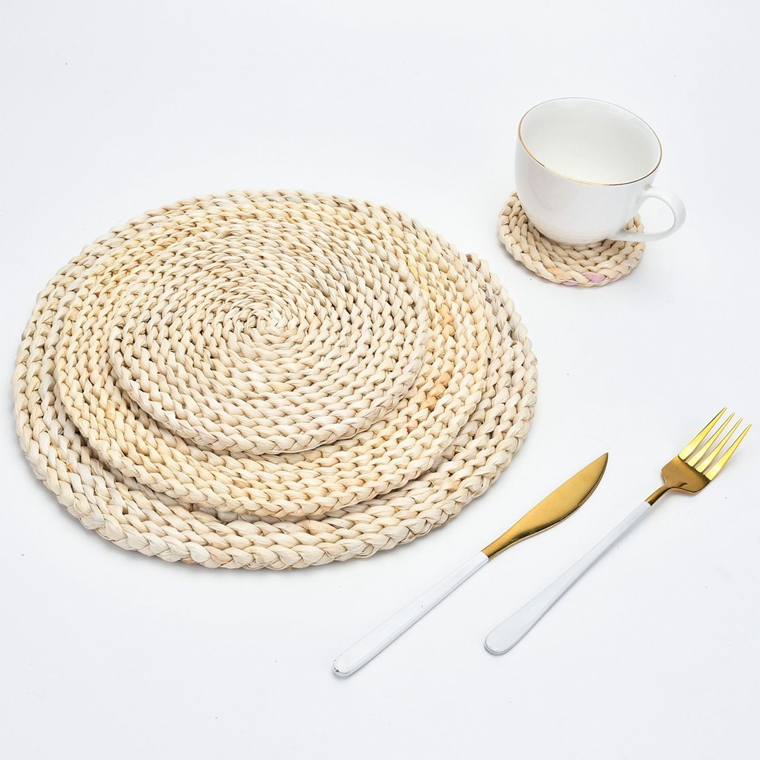 Además de ser decorativo, protege tu mesa al aislar eficazmente el calor de platos, fuentes o tazas. Su textura trenzada y color neutro lo hacen versátil, combinando fácilmente con distintos estilos de vajilla y decoración.