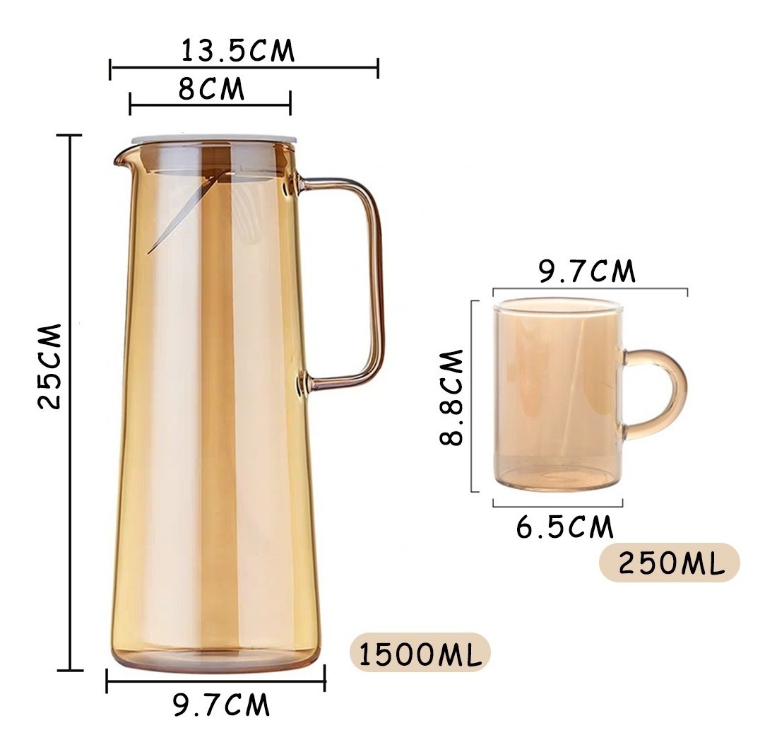 // SET DE JARRA + 4 TAZAS DE VIDRIO //