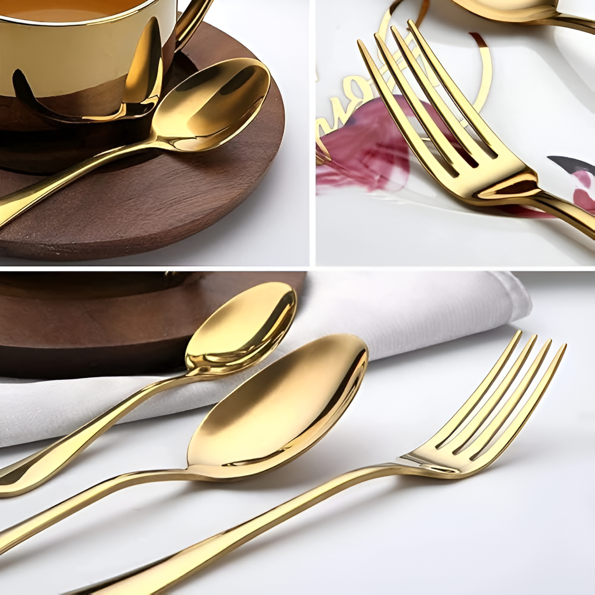 Juego De 4 Cubiertos Acero Inoxidable Clasicos Dorado