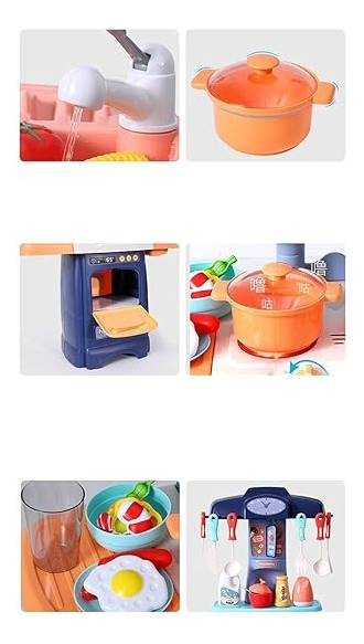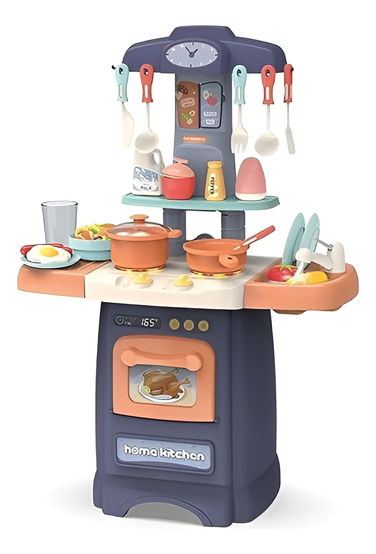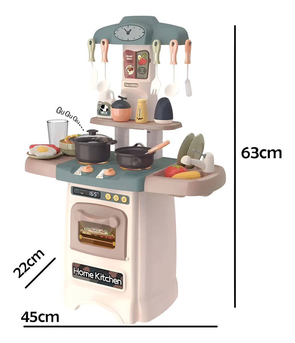 La cocina de juguete tiene luces y sonido, haciendo la experiencia más realista, e incluye un menú para que los pequeños elijan qué cocinar.