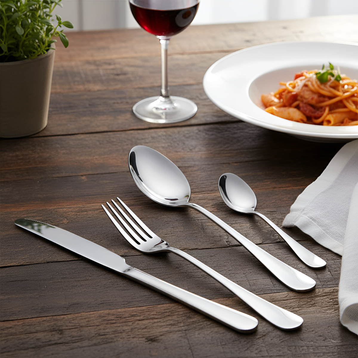 Elegí calidad y estilo para tu mesa con este set de cubiertos de 24 piezas en acero inoxidable, pensado para brindar resistencia, durabilidad y un diseño sofisticado en cada comida.