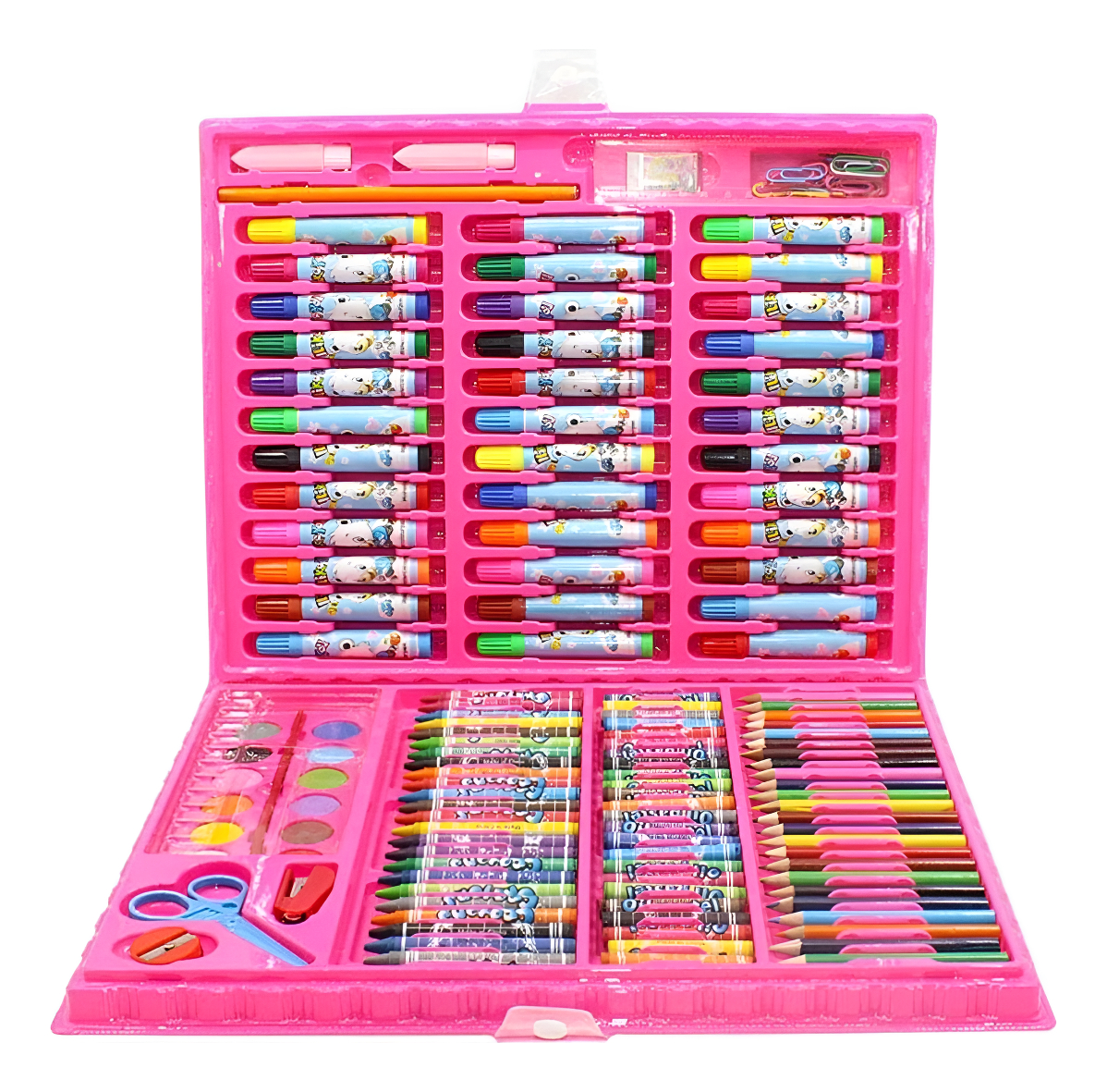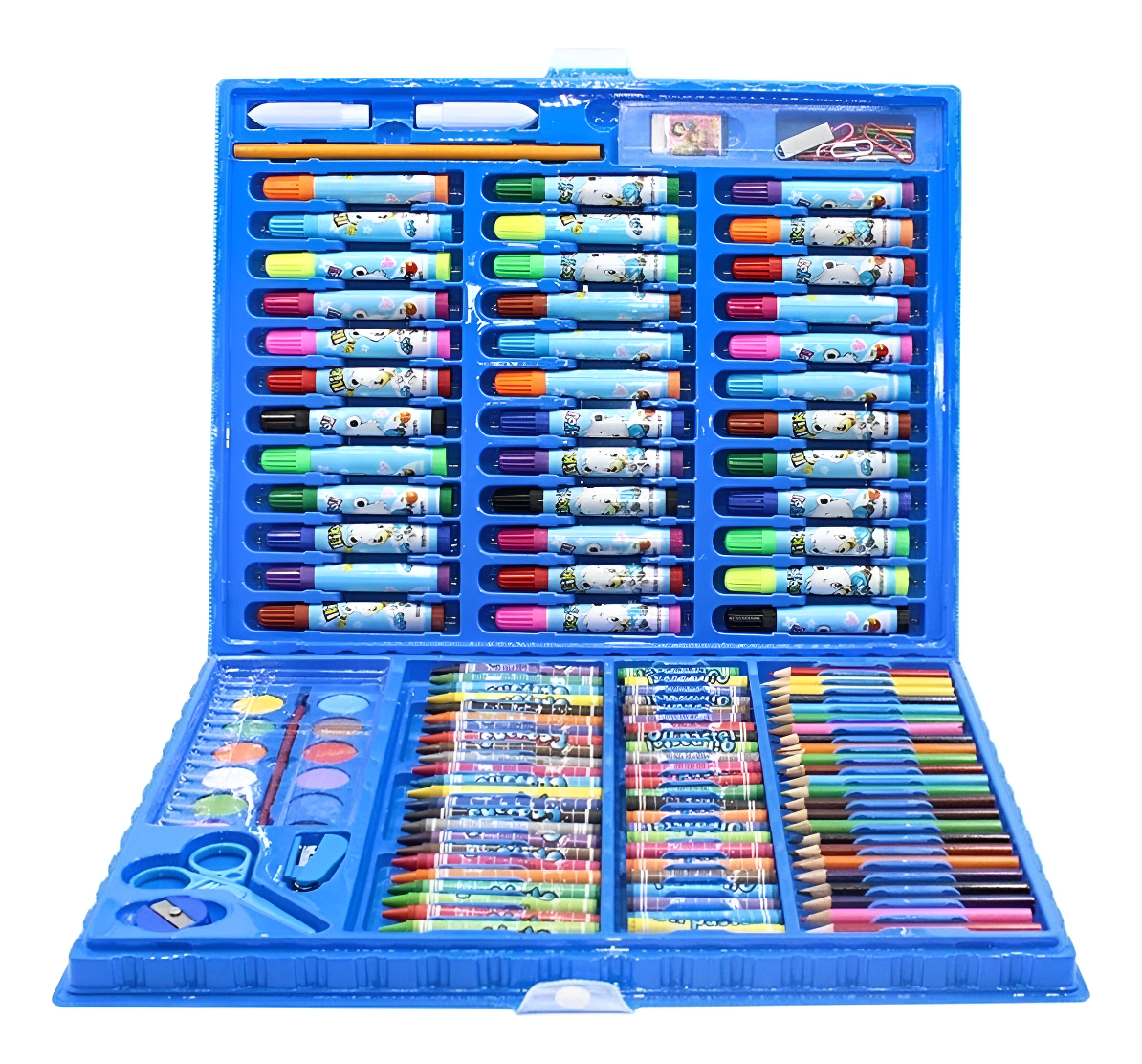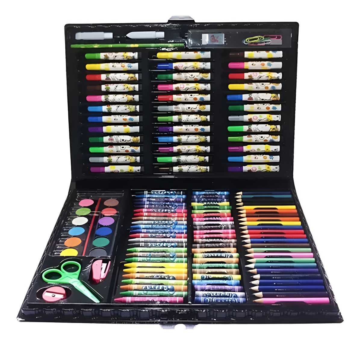 Inspirá la creatividad de los más chicos con este completo set de arte de 150 piezas. Incluye todo lo necesario para pintar, dibujar y colorear, manteniendo los materiales organizados en un práctico maletín plástico con compartimentos.