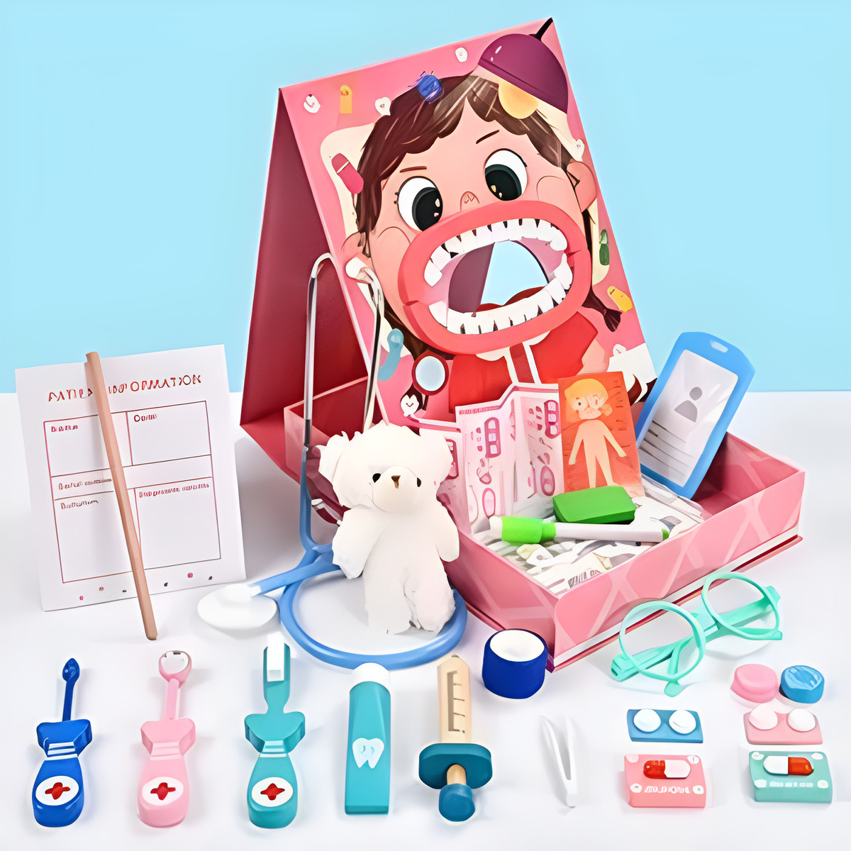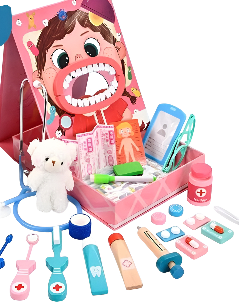Convertí el juego en aprendizaje con este set Montessori de dentista para niños. Diseñado en madera y con piezas imantadas, permite que los más chicos aprendan sobre el cuidado dental mientras se divierten jugando a ser odontólogos.
