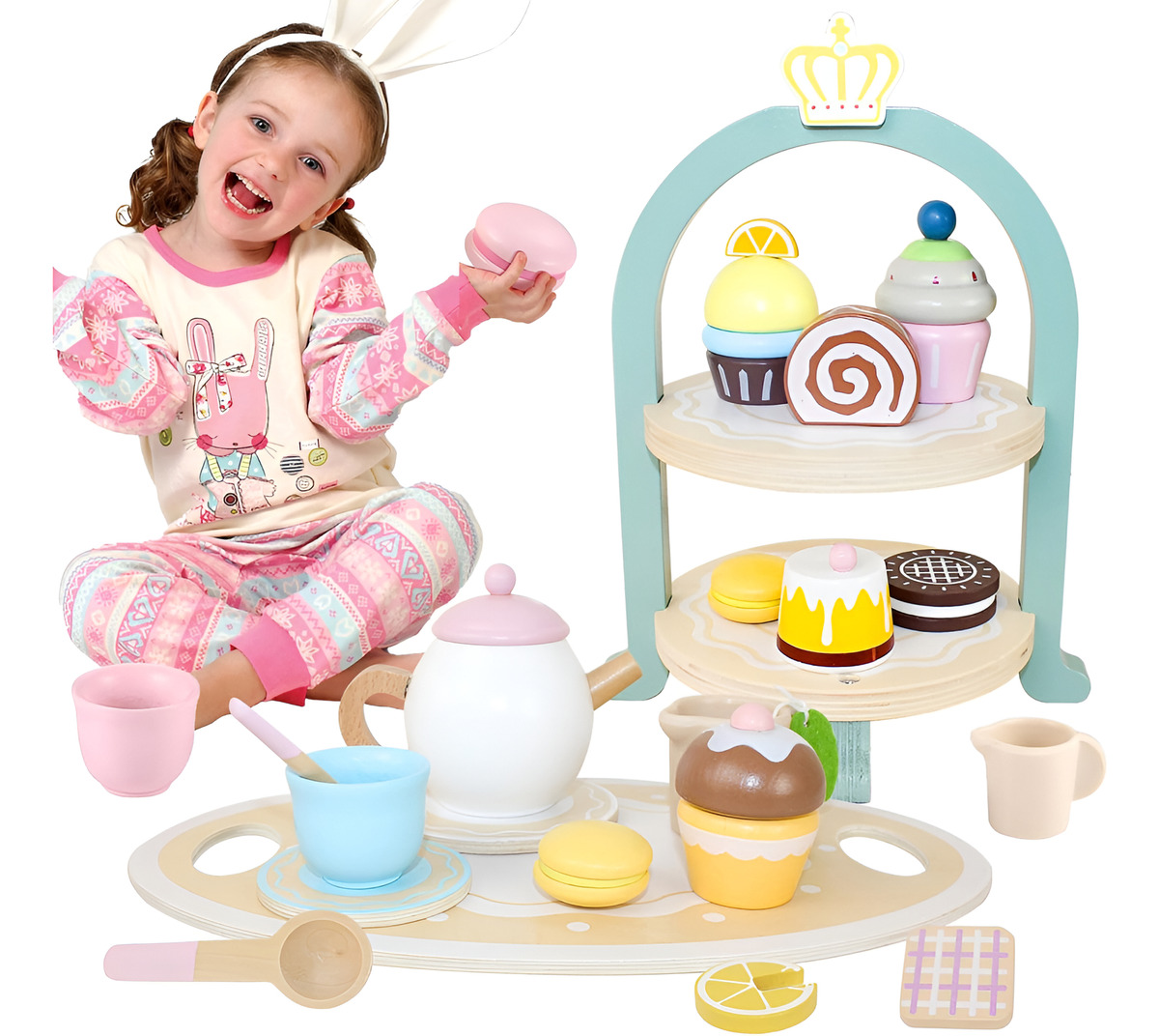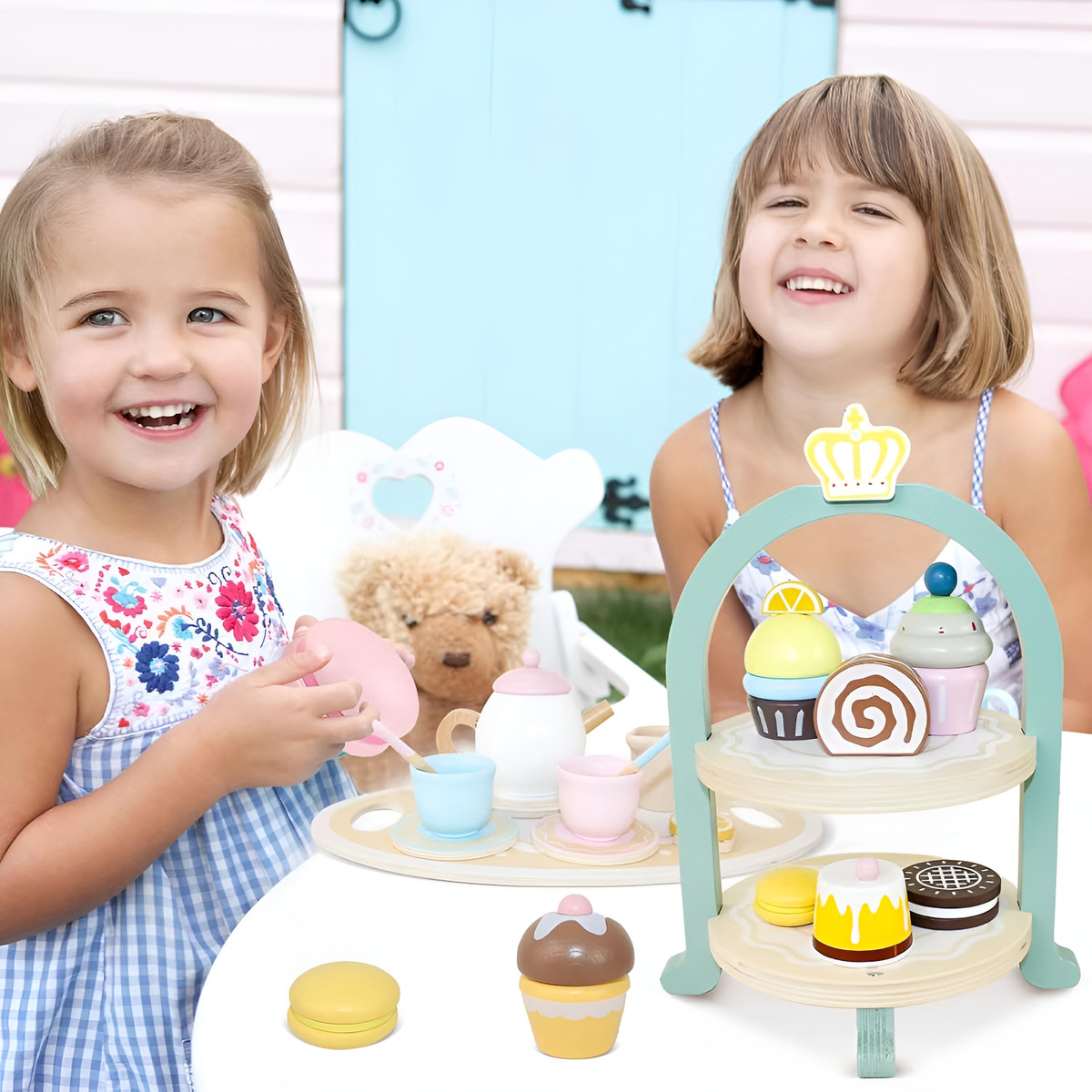 Convertí el juego en un momento mágico con este set de pastelería de madera para la hora del té. Diseñado con piezas coloridas y realistas, invita a los más chicos a compartir, crear historias y disfrutar de juegos de rol llenos de imaginación.