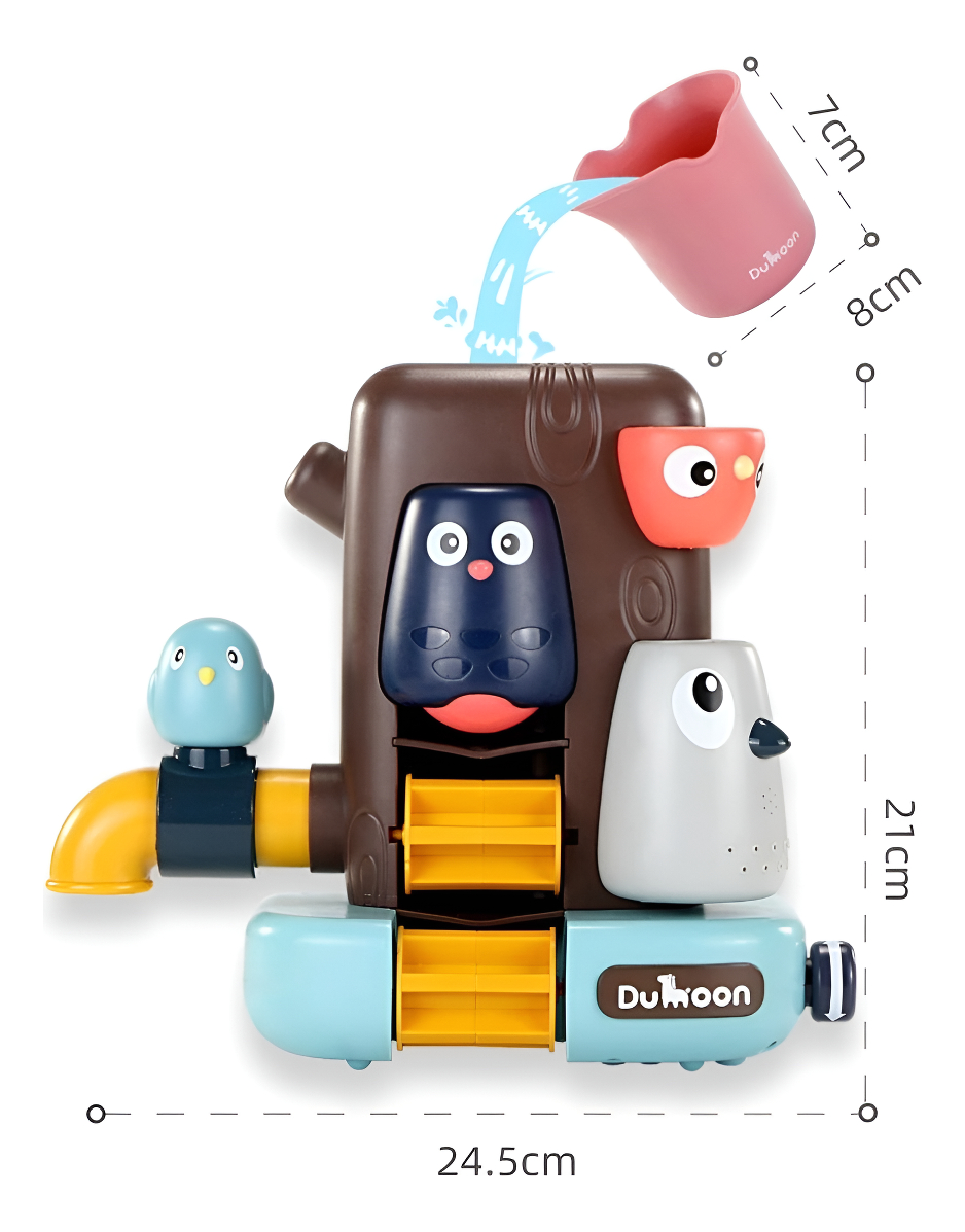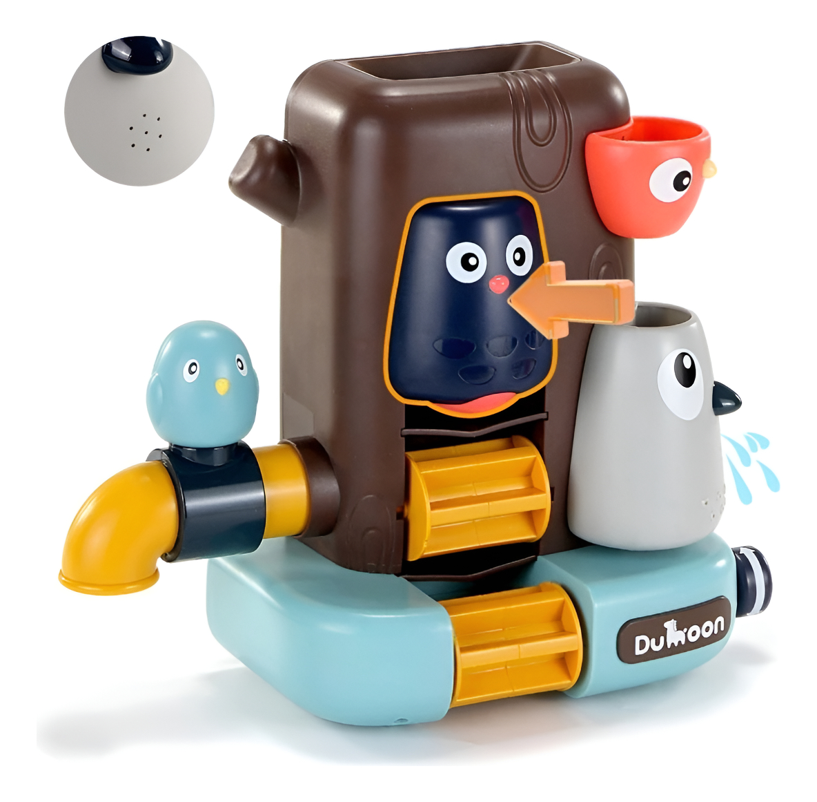 Transformá la hora del baño en un momento de diversión y aprendizaje con este juguete interactivo de agua para bebés. Su diseño con pájaros, engranajes y cascadas estimula la imaginación mientras convierte la rutina en un juego educativo.