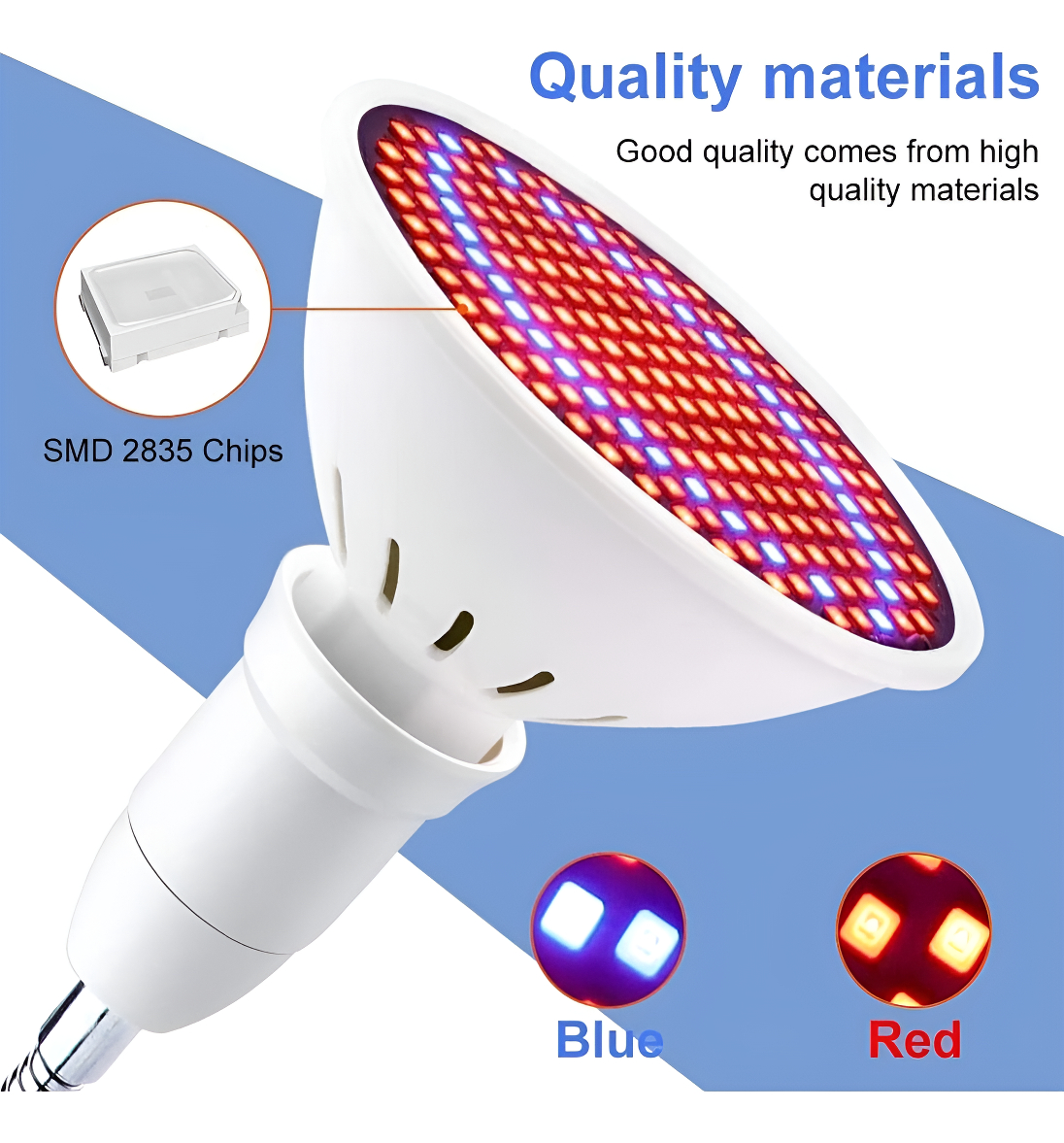 Gracias a su espectro completo de 200 LEDs (166 rojos + 34 azules), ofrece la luz ideal para todas las etapas del crecimiento: desde la germinación hasta la floración. Es perfecta para invernaderos, hidroponía, bonsáis, cultivos en interiores, growbox o macetas decorativas.