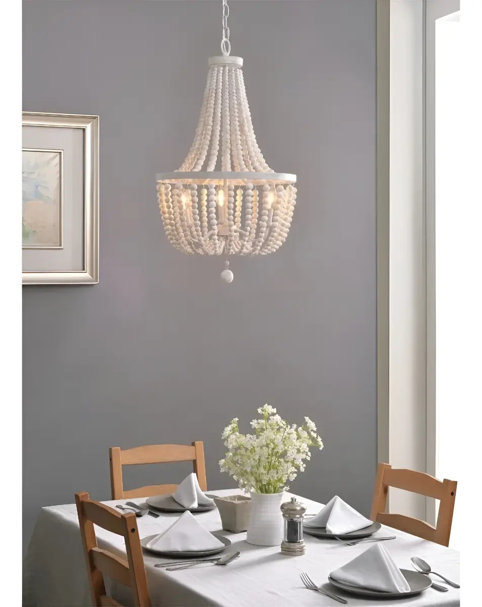 Lampara Araña De Techo Luminaria Colgante Cuentas De Madera