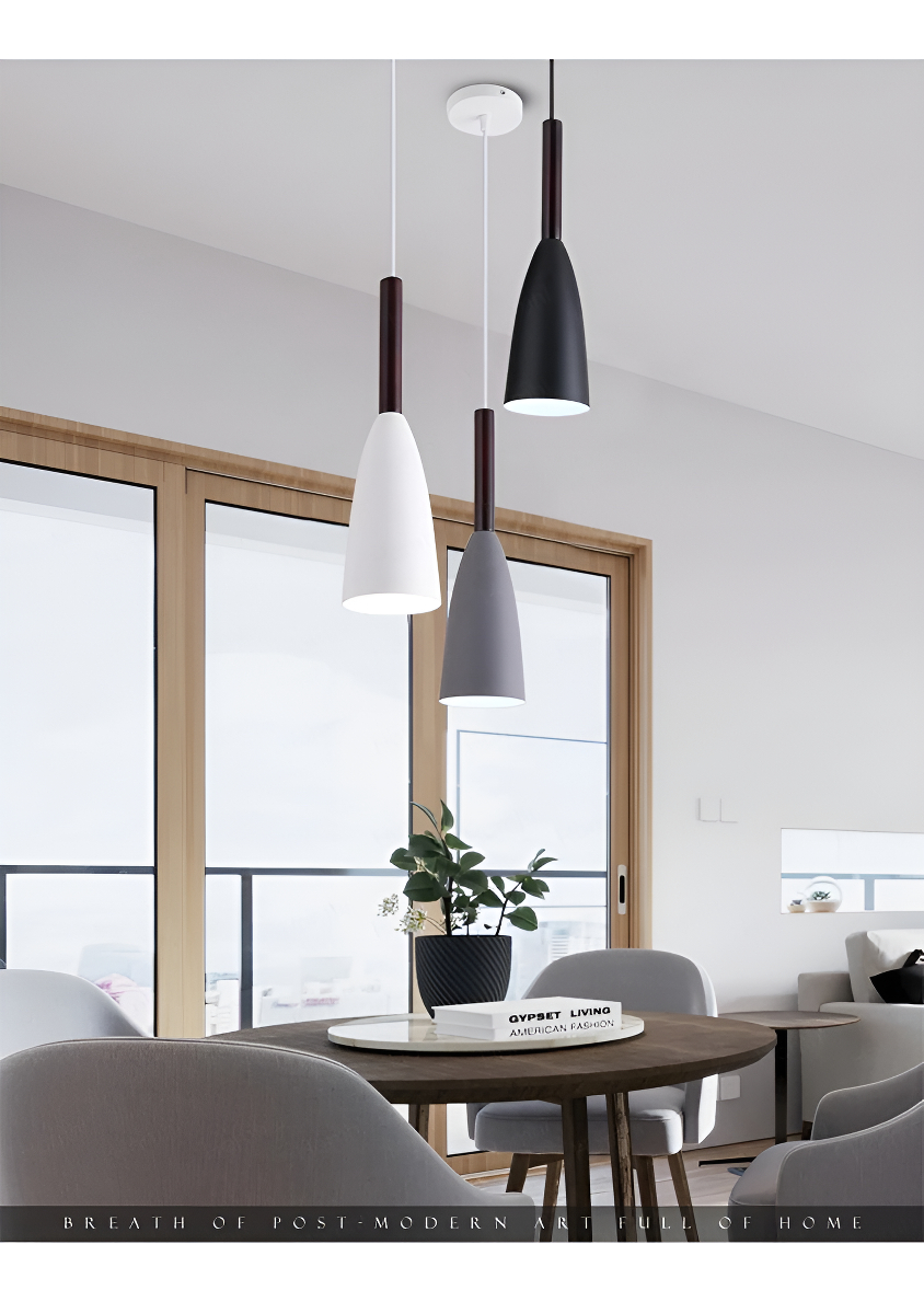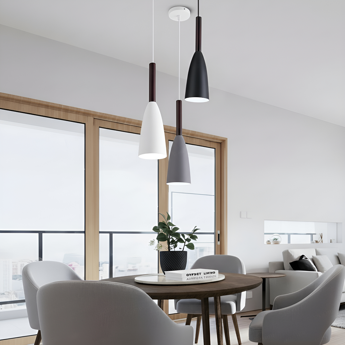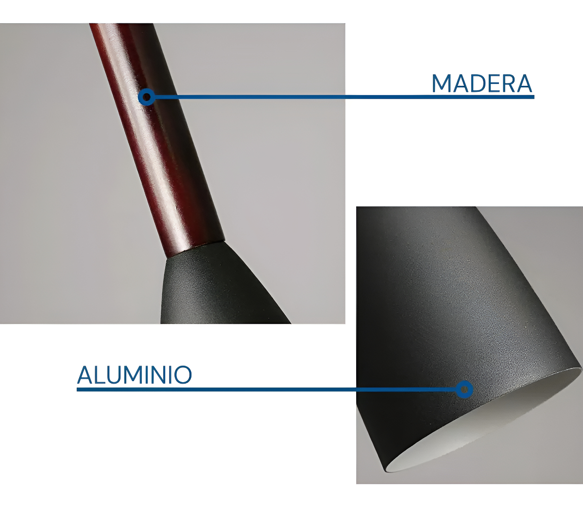 Dale un estilo moderno y elegante a tus espacios con esta lámpara colgante de diseño nórdico. Su combinación de metal y madera crea un acabado sofisticado que se adapta tanto a livings como a comedores, dormitorios, bares o espacios de trabajo.