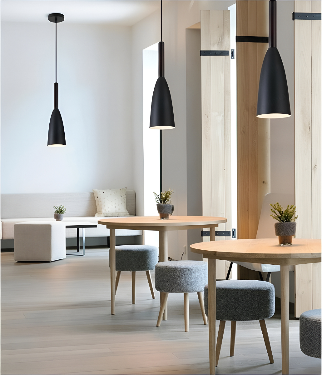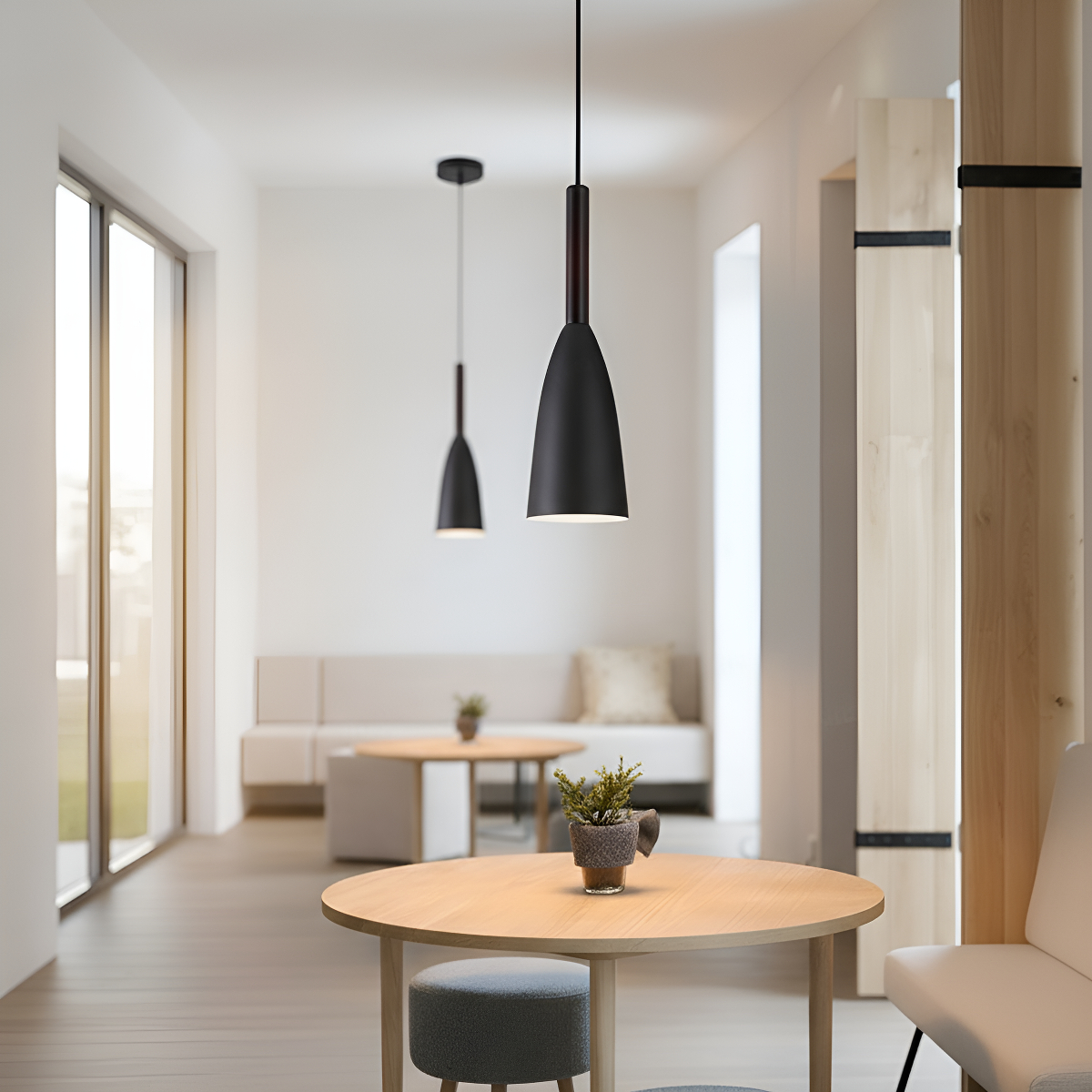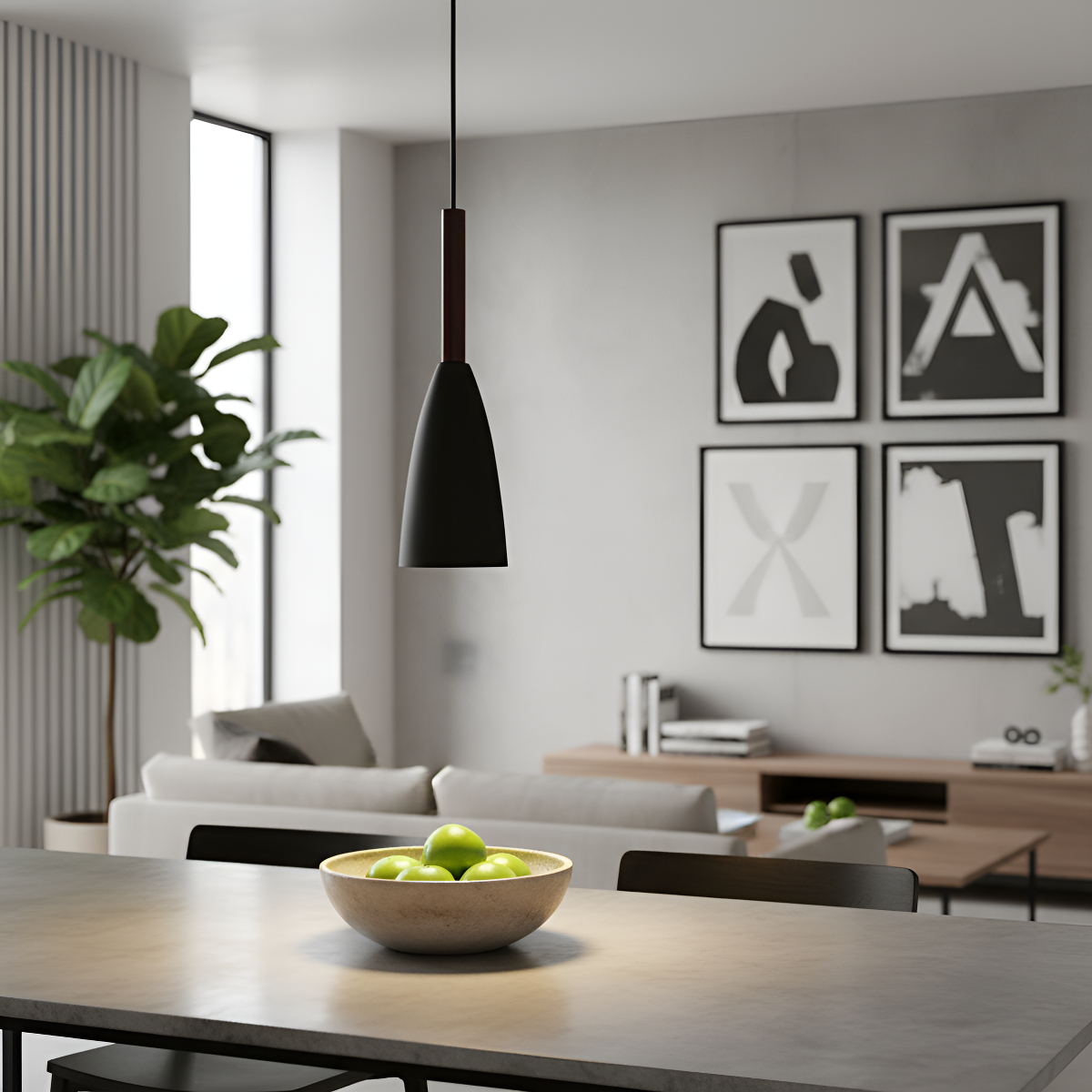 Dale un estilo moderno y elegante a tus espacios con esta lámpara colgante de diseño nórdico. Su combinación de metal y madera crea un acabado sofisticado que se adapta tanto a livings como a comedores, dormitorios, bares o espacios de trabajo.