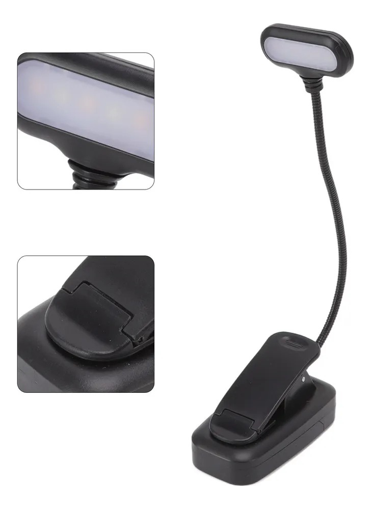 Iluminá donde quieras con esta lámpara LED portátil con pinza. Se fija en segundos a mesas, estantes, atriles o cabeceras y su cuello flexible dirige la luz justo donde la necesitás para leer, estudiar o trabajar sin cables en el medio.