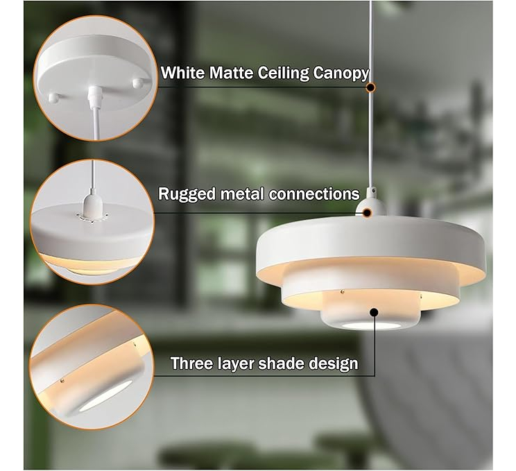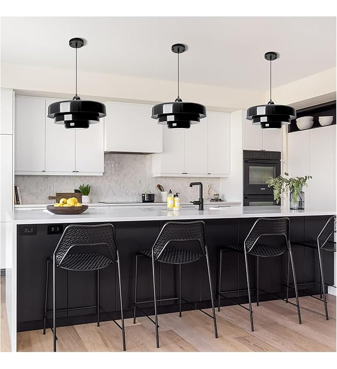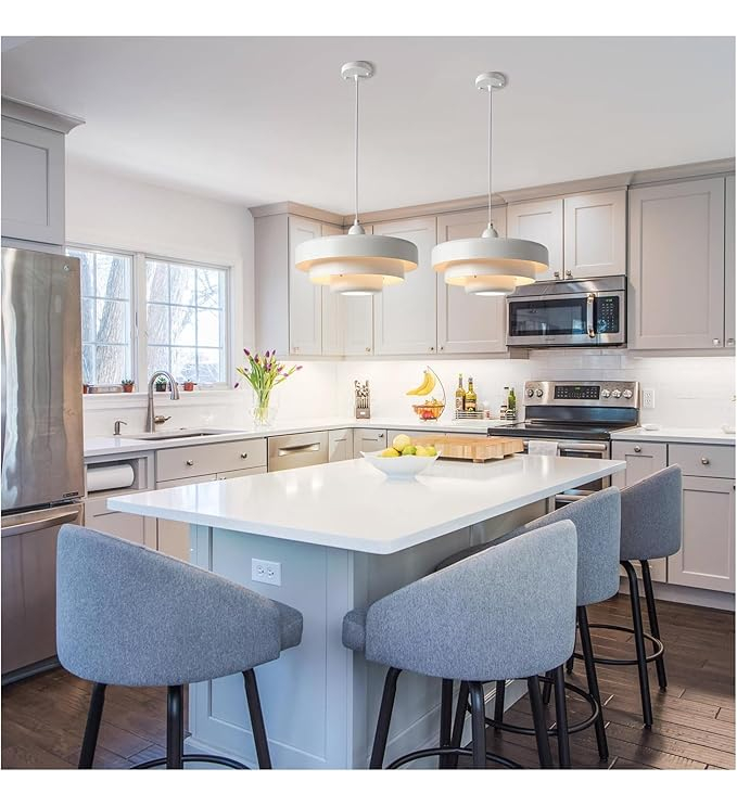 Dimensiones perfectas: con un diámetro de 35cm y una altura de 21cm, junto con una longitud de cable ajustable de 180cm, estas modernas luces colgantes de mediados de siglo son adecuadas para diversas aplicaciones de iluminación interior, incluyendo islas de cocina, pasillos, restaurantes, salas de estar, dormitorios y mesas de comedor.