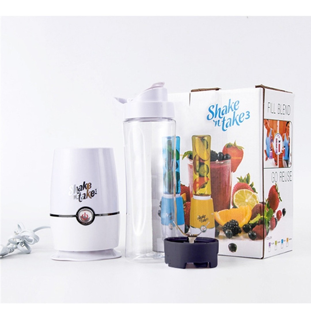 Licuadora portátil personal Shake n take 3 Original Batidos 2 vasos ¡Has tus batidos, malteadas y jugos de manera nutritiva, rápida y segura! El Shake N Take 3 es ideal para aquellas personas que quieren alimentarse saludablemente y no disponen de mucho tiempo, la licuadora Shake n Take fue diseñada para usarse de forma rápida y sencilla En segundos obtendrás una bebida suave, saludable y refrescante, gracias a su motor de 180W.