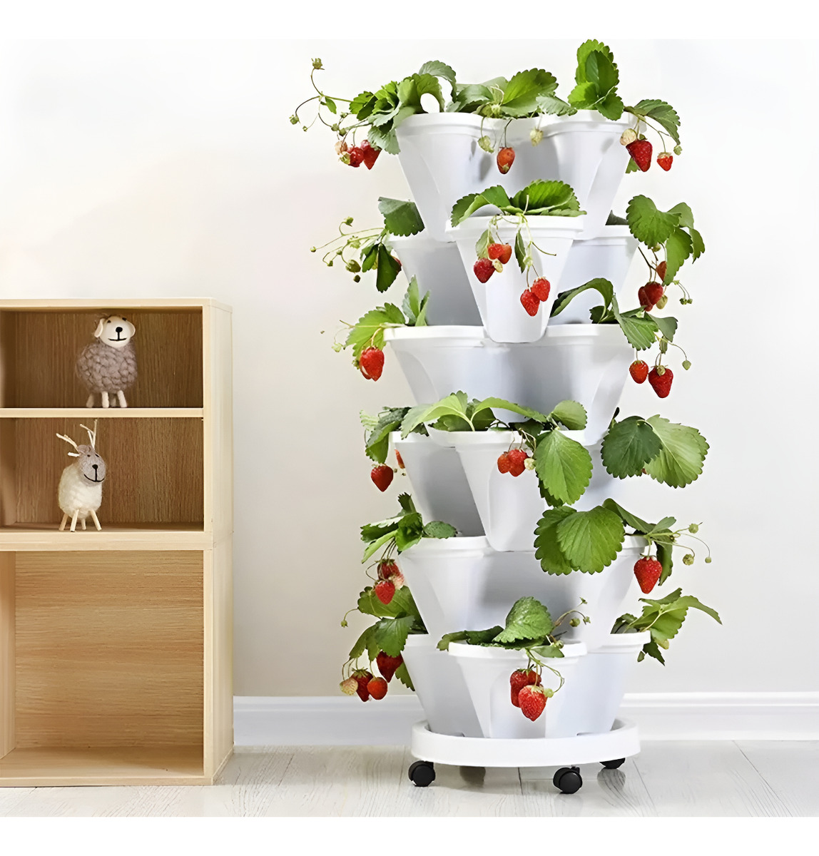 – Torre de jardinería apilable: hecha de polipropileno apto para uso alimentario, se puede utilizar como 4 macetas separadas, o puede apilarlas para construir una torre de flores blancas. Atractivo y ahorrador de espacio, ideal para fiestas de cumpleaños y bodas románticas.
