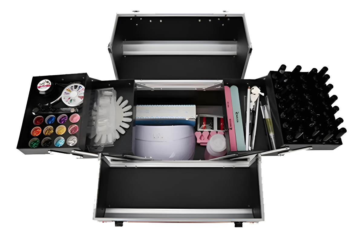 Esta maleta rígida vacía es ideal para maquilladores, manicuristas y estilistas que necesitan trasladar o guardar sus productos de forma segura y ordenada. Su estructura robusta y compartimentos desplegables permiten acceder fácilmente a cada herramienta, optimizando tu tiempo y espacio de trabajo.
